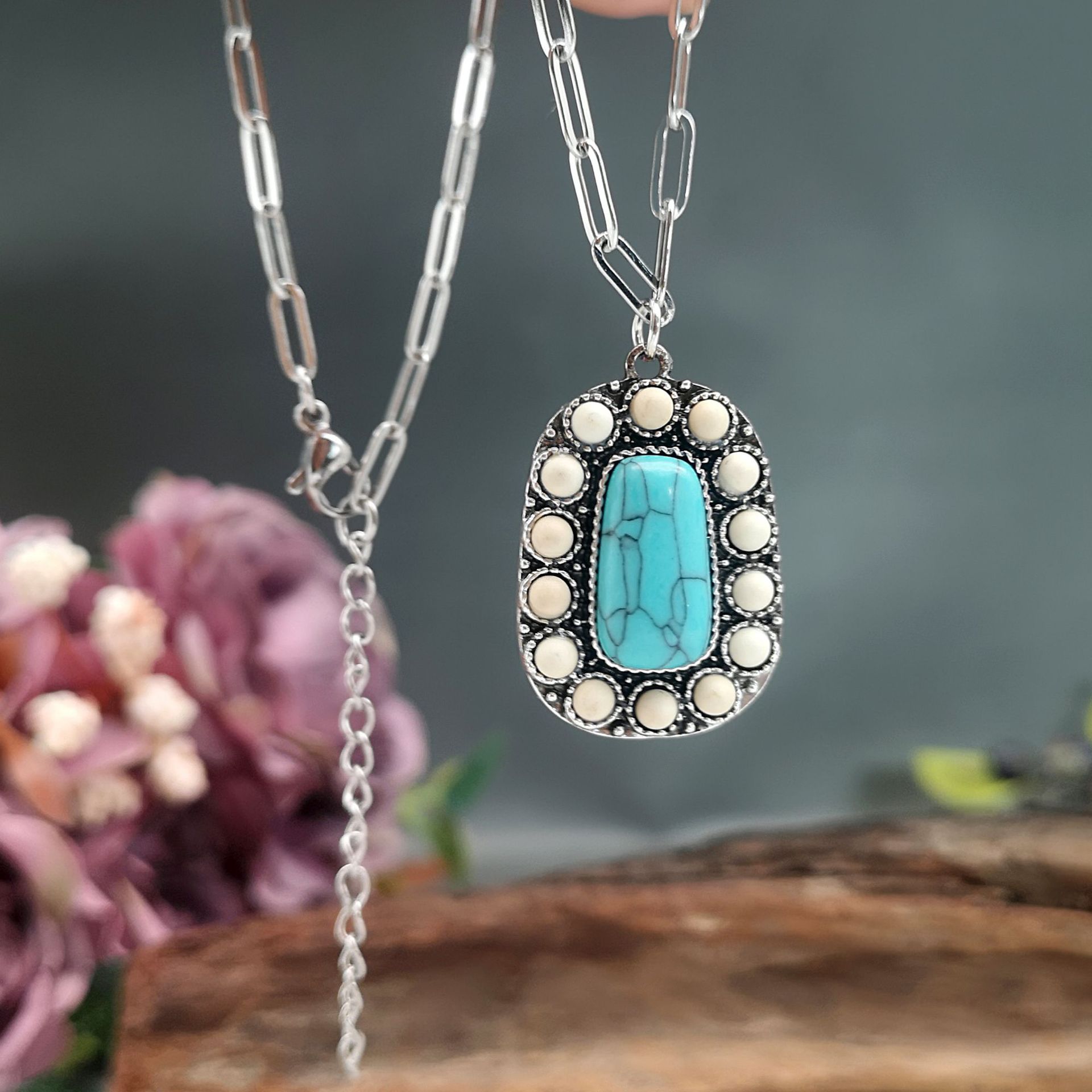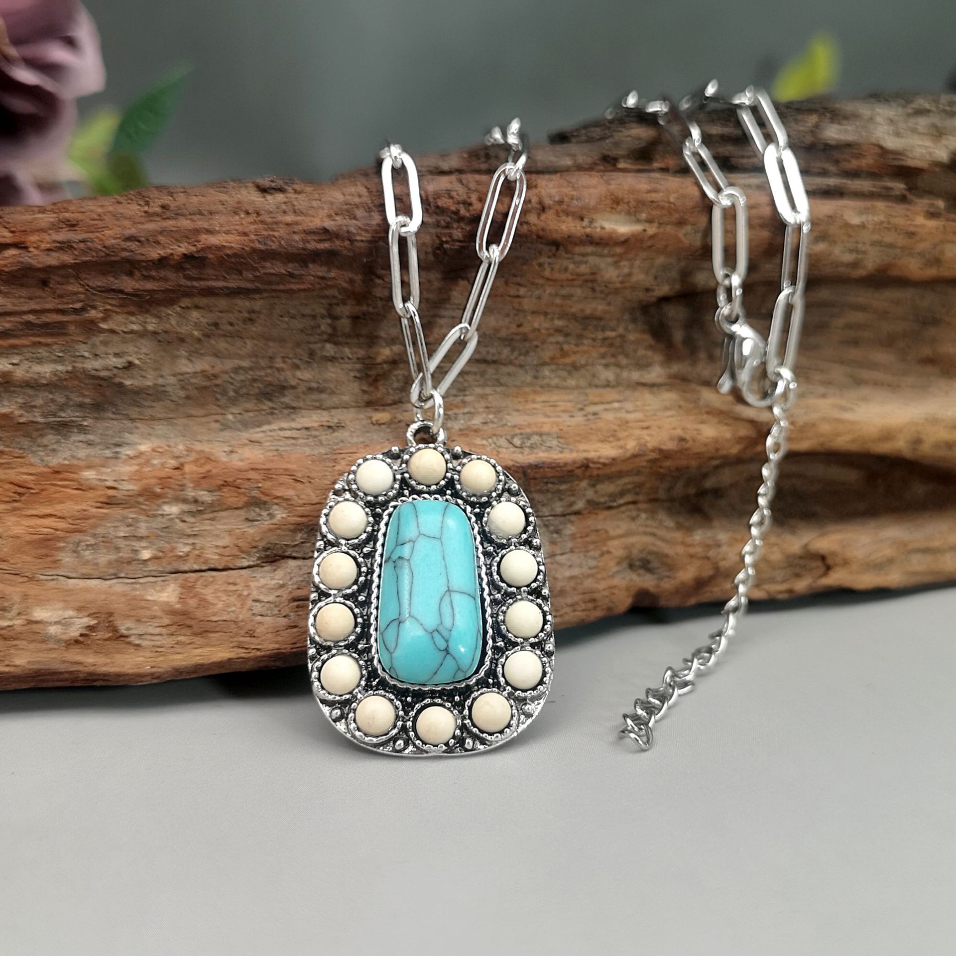Módní Tyrkysová náhrdelník, Zinek, s Přírodní Turquoise, módní šperky, smíšené barvy, 21x31mm, Délka 50 cm, Prodáno By PC