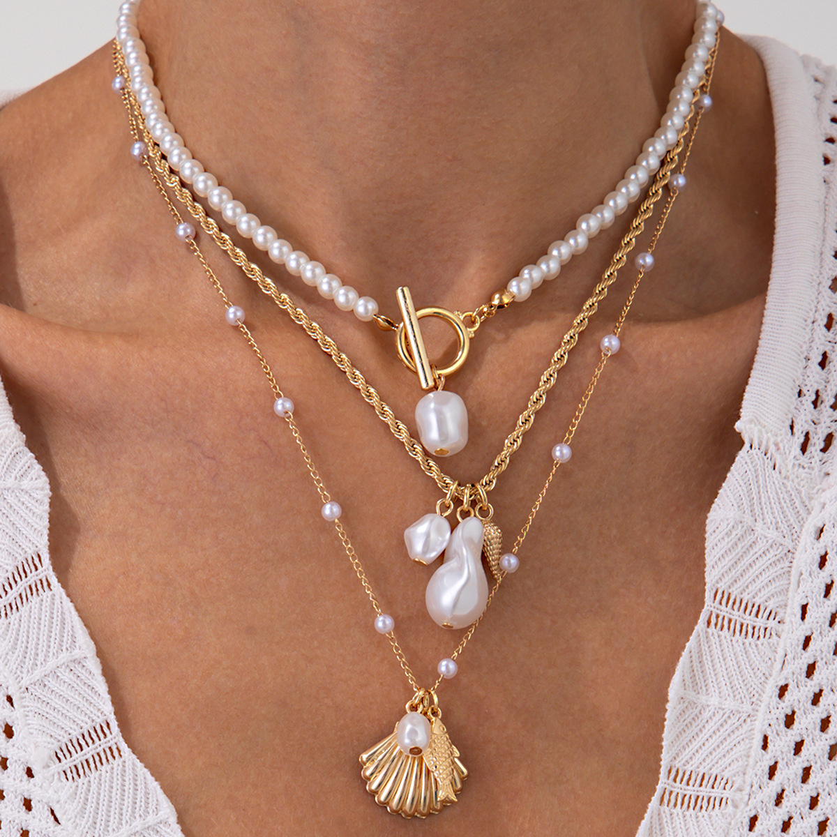 Módní náhrdelník Multi Layer, Zinek, s Měď + křídový + železo & Plastové Pearl, barva pozlacený, módní šperky & vícevrstvá, více barev na výběr, Prodáno By PC