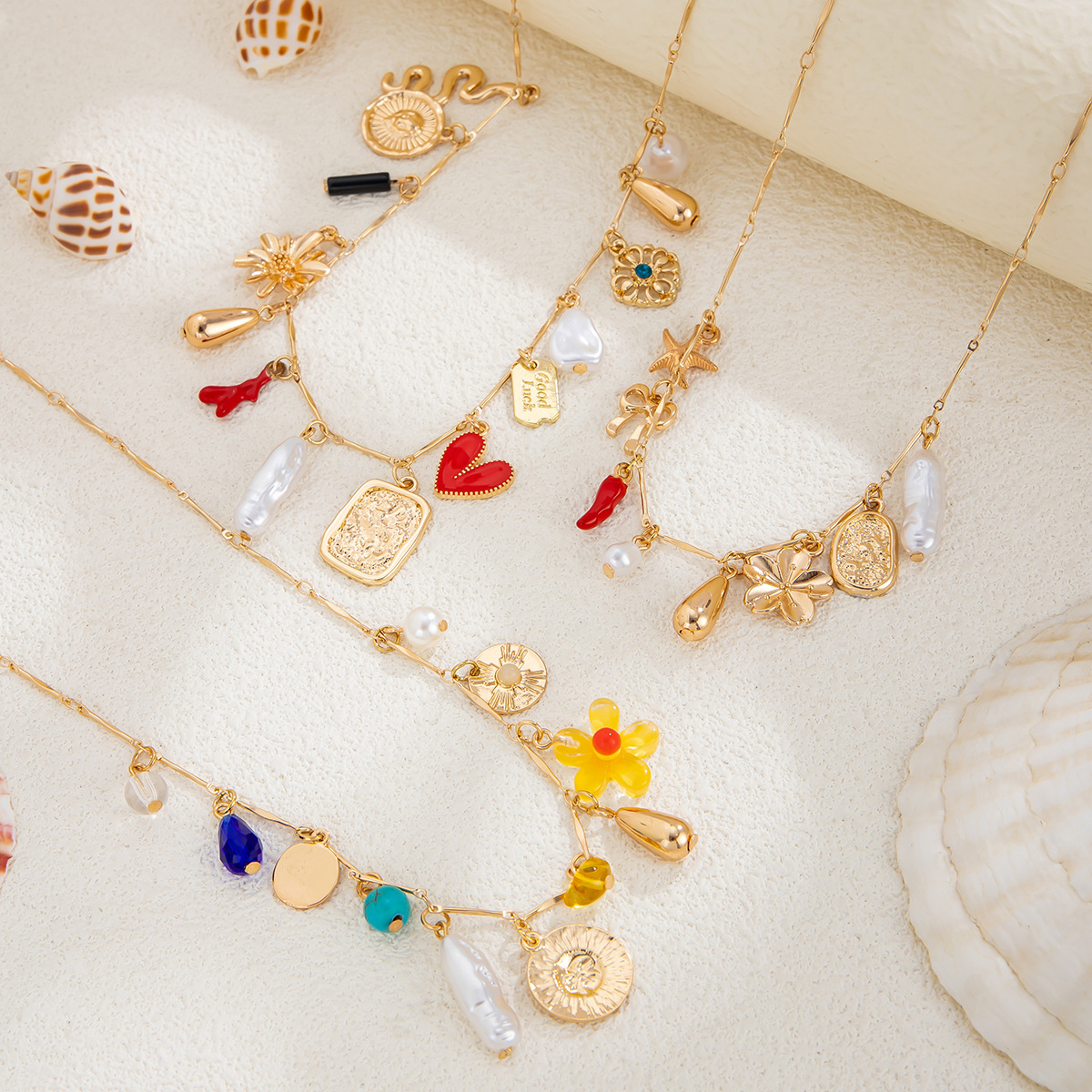 Módní náhrdelník Multi Layer, Zinek, s tyrkysový & Porcelán & Plastové Pearl & Akryl, barva pozlacený, módní šperky & vícevrstvá & smalt, více barev na výběr, Prodáno By Pair