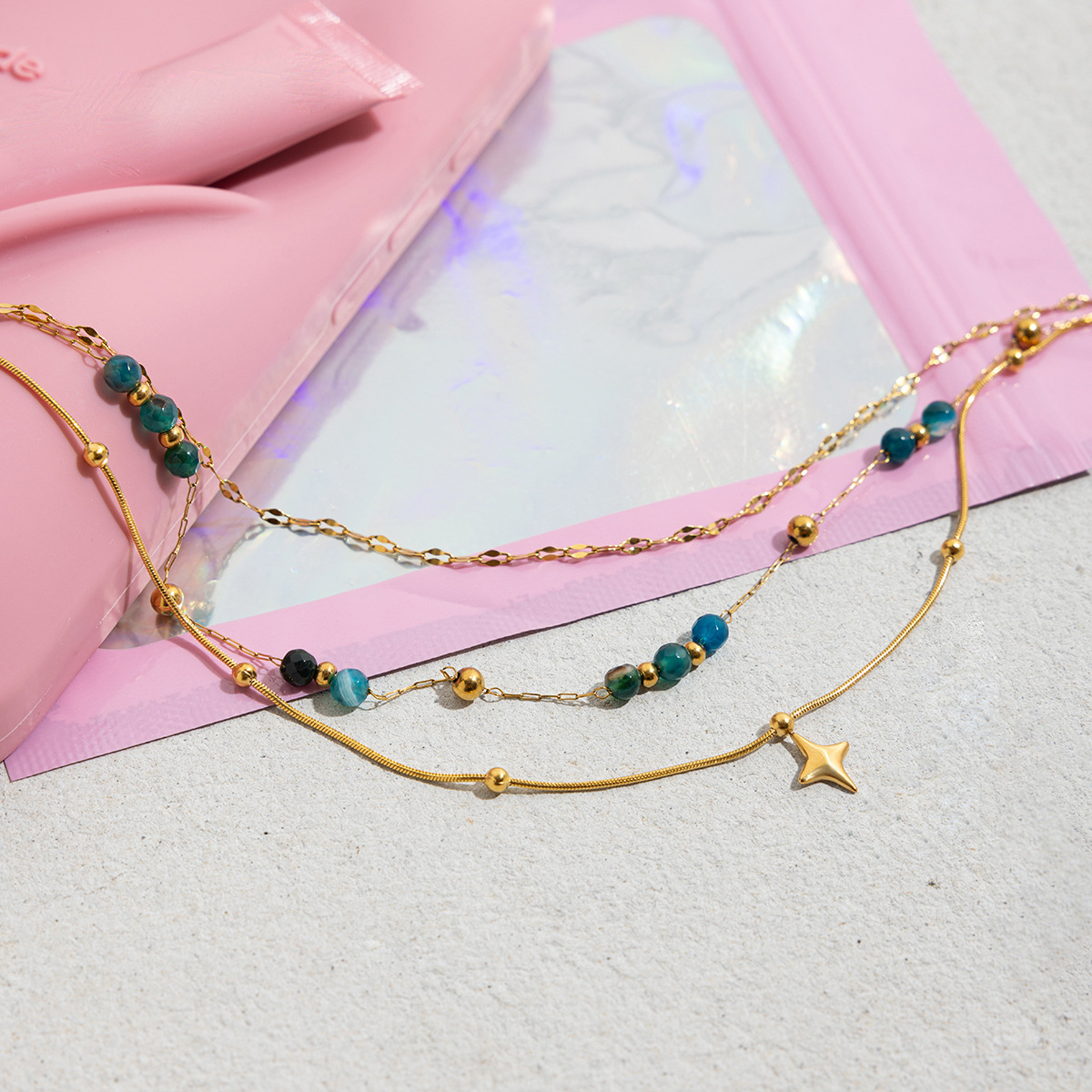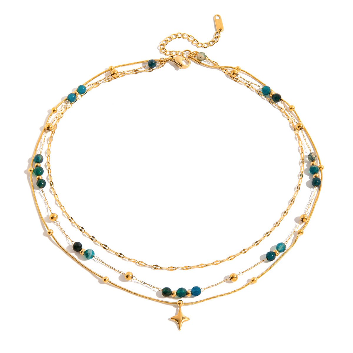 Módní náhrdelník Multi Layer, 304 Stainless Steel, s Přírodní kámen, 18K pozlacené, tři vrstvy & módní šperky & pro ženy, Prodáno By PC