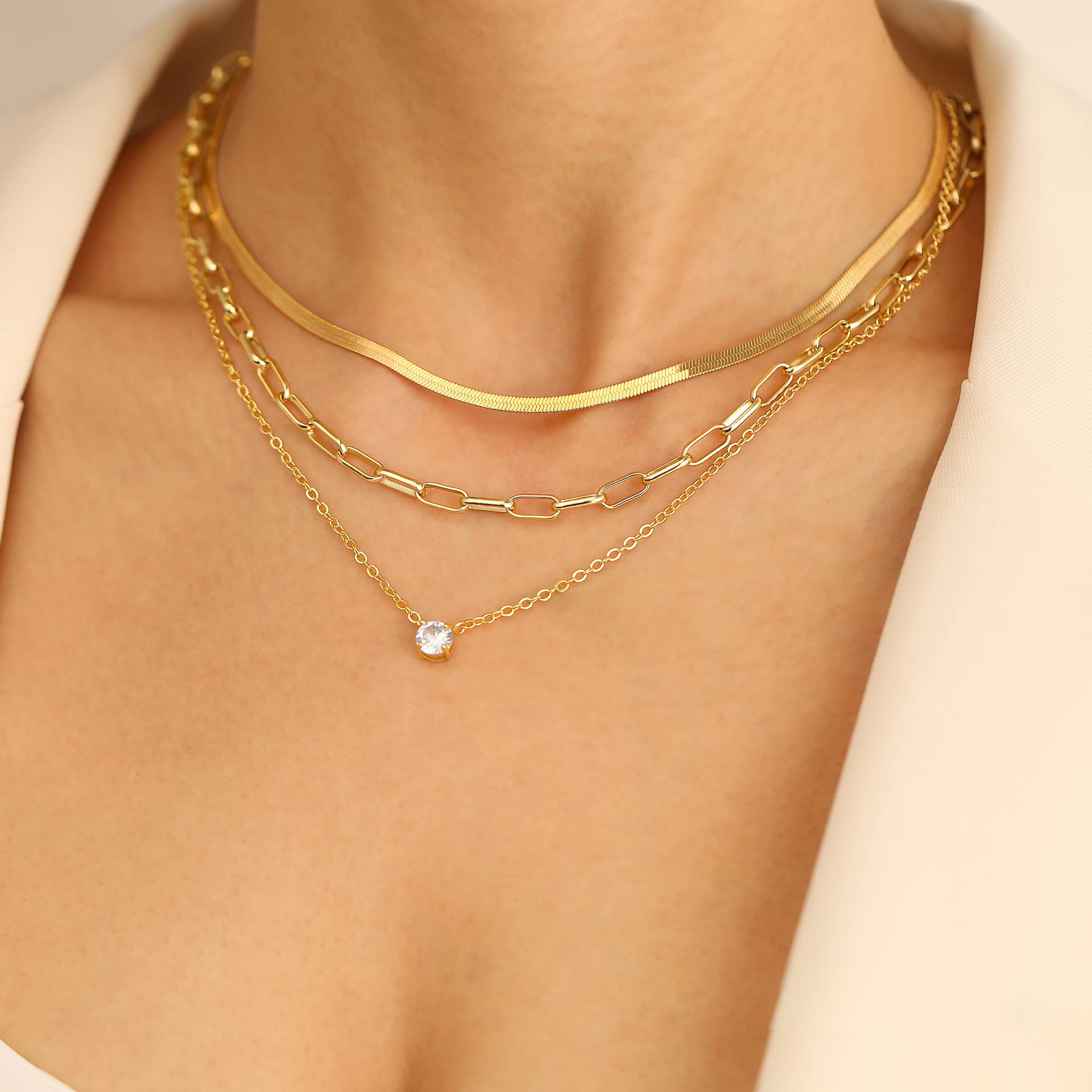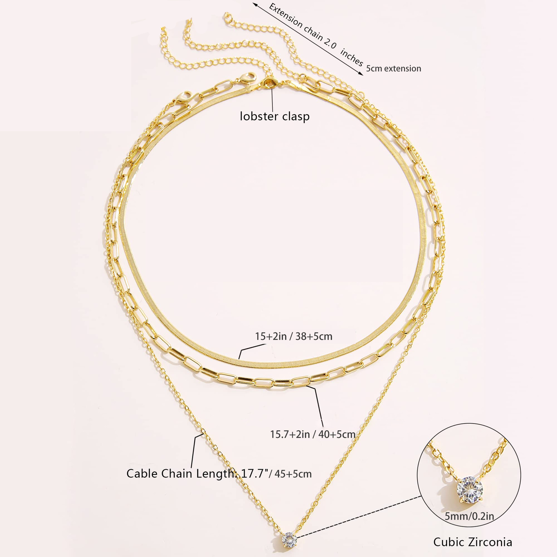 Módní náhrdelník Multi Layer, 304 Stainless Steel, s Cubic Zirconia, 18K pozlacené, tři kusy & módní šperky & pro ženy, Prodáno By nastavit