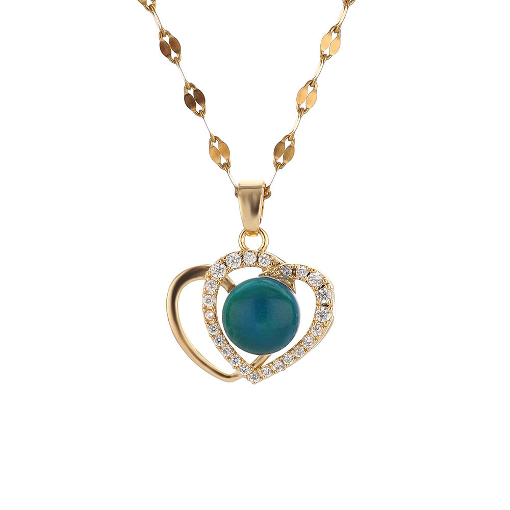 Módní náhrdelník šperky, 304 Stainless Steel, Srdce, barva pozlacený, DIY & micro vydláždit kubické zirkony & nálada smalt, smíšené barvy, 25mm, Délka 50 cm, Prodáno By PC