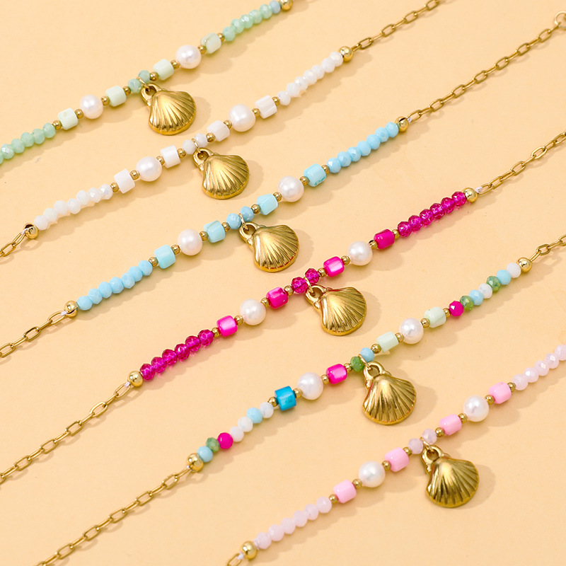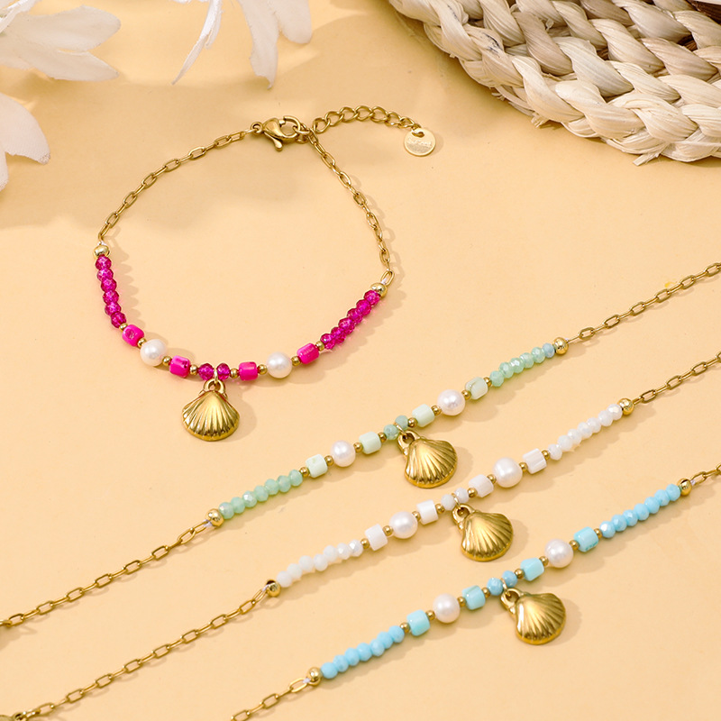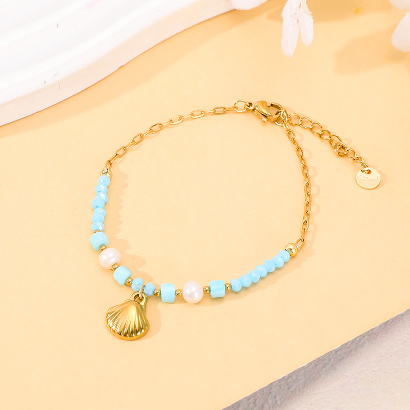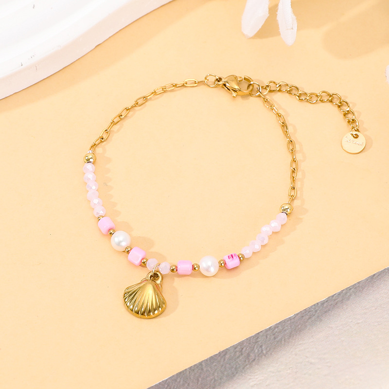 Módní náramek šperky, 304 Stainless Steel, s Perleť & Krystal, barva pozlacený, módní šperky, více barev na výběr, Prodáno By PC