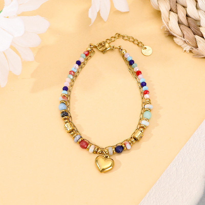 Módní náramek šperky, 304 Stainless Steel, s Přírodní kámen & Láva & Hematit & Krystal, barva pozlacený, Dvojitá vrstva & módní šperky, více barev na výběr, Prodáno By PC