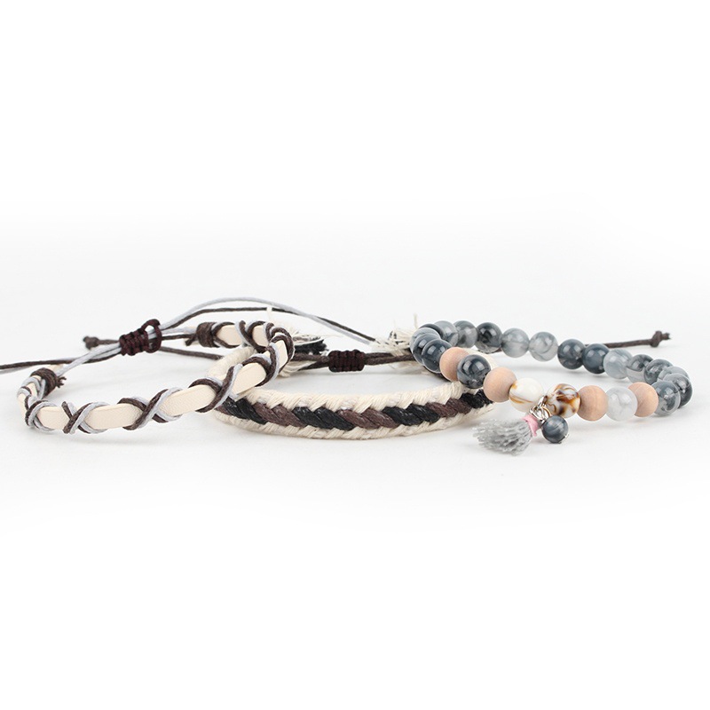 1:Acrylic Wood Beads Bracelet2:PU bracelet3:Hand-woven bracelet4:3 pieces of suit