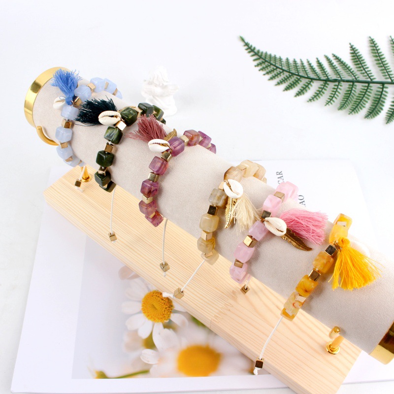Módní náramek šperky, Akryl, s Vosk & Skořápka & Poměděný Plastové & Zinek, módní šperky, více barev na výběr, 8mm, Délka 27 cm, Prodáno By PC