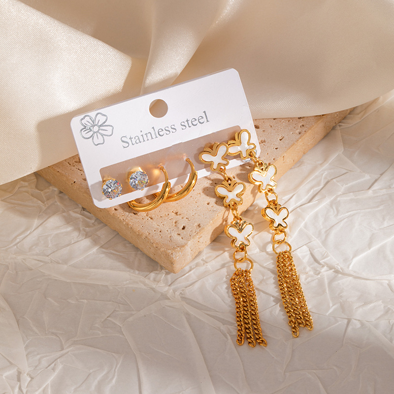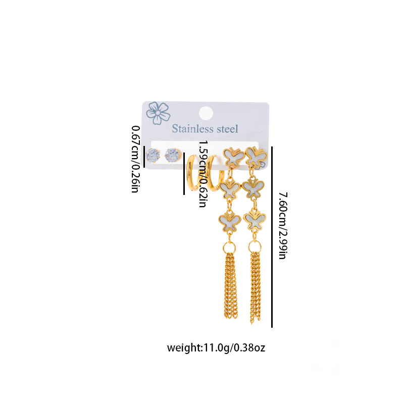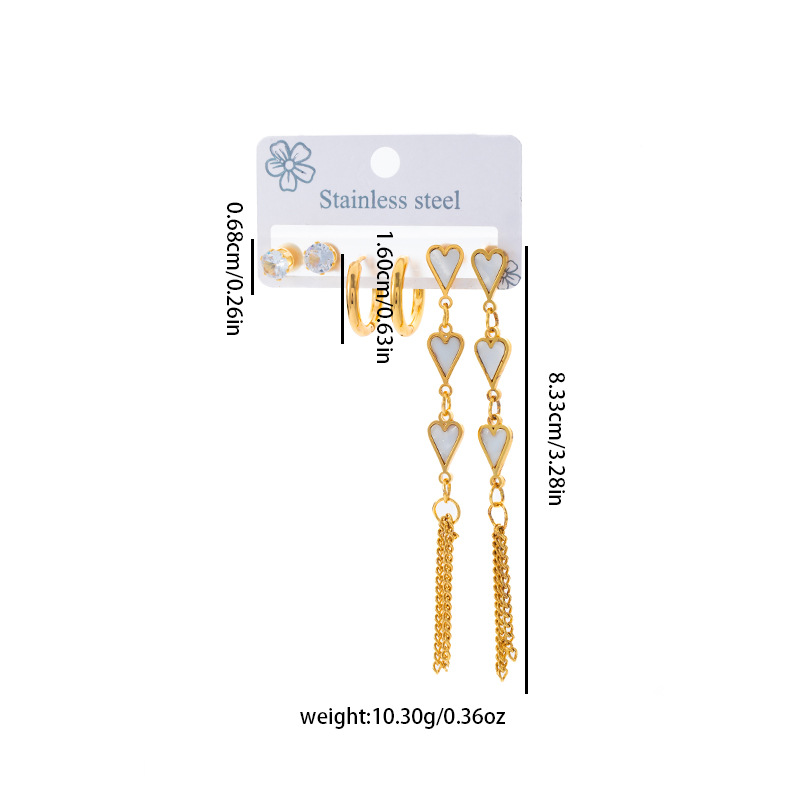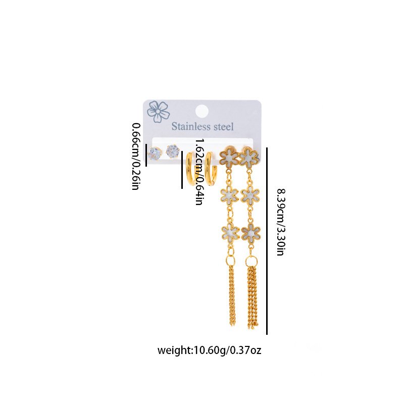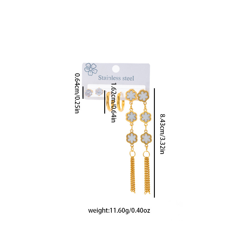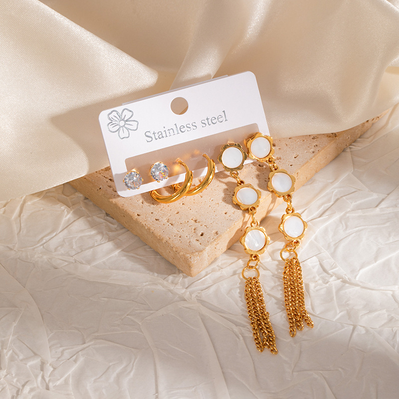 Módní náušnice Fringe, 304 Stainless Steel, s White Shell & Akryl, tři kusy & různé materiály pro výběr & různé styly pro výběr & pro ženy & s drahokamu, zlatý, Prodáno By nastavit