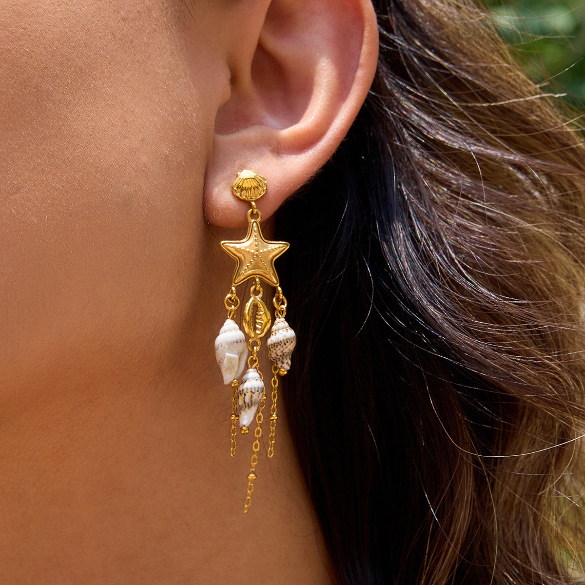 Módní náušnice Fringe, 304 Stainless Steel, s Trumpet Shell, módní šperky & různé styly pro výběr & pro ženy, zlatý, Prodáno By Pair
