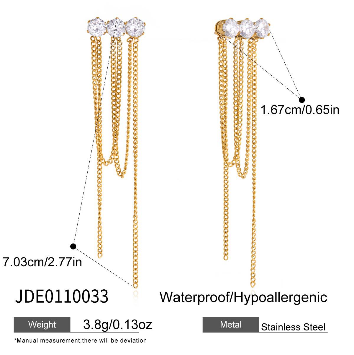 Módní náušnice Fringe, Nerez, s Cubic Zirconia, barva pozlacený, pro ženy, 16.70x70.30mm, Prodáno By Pair