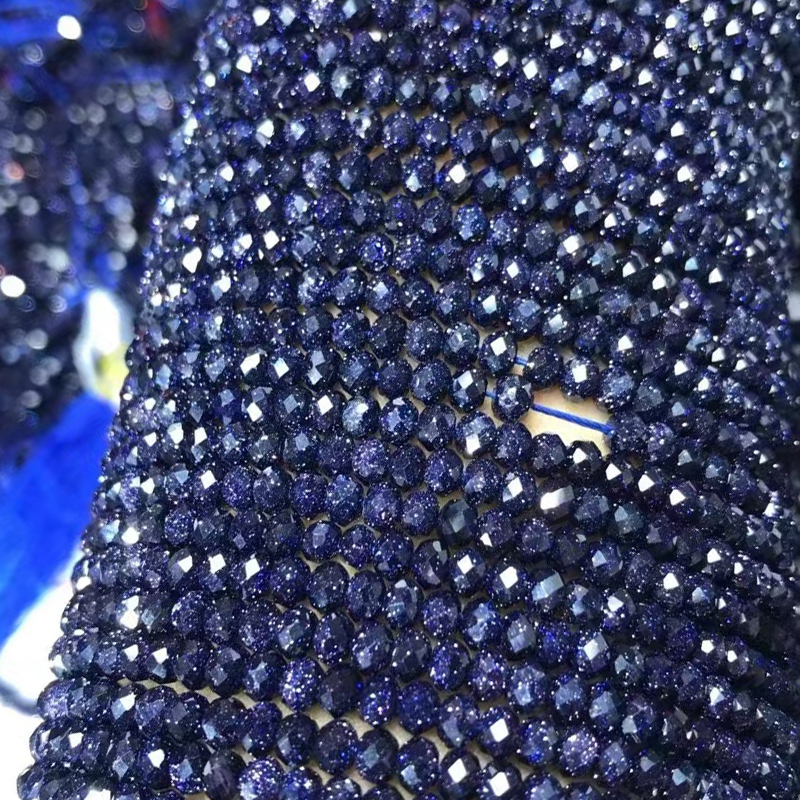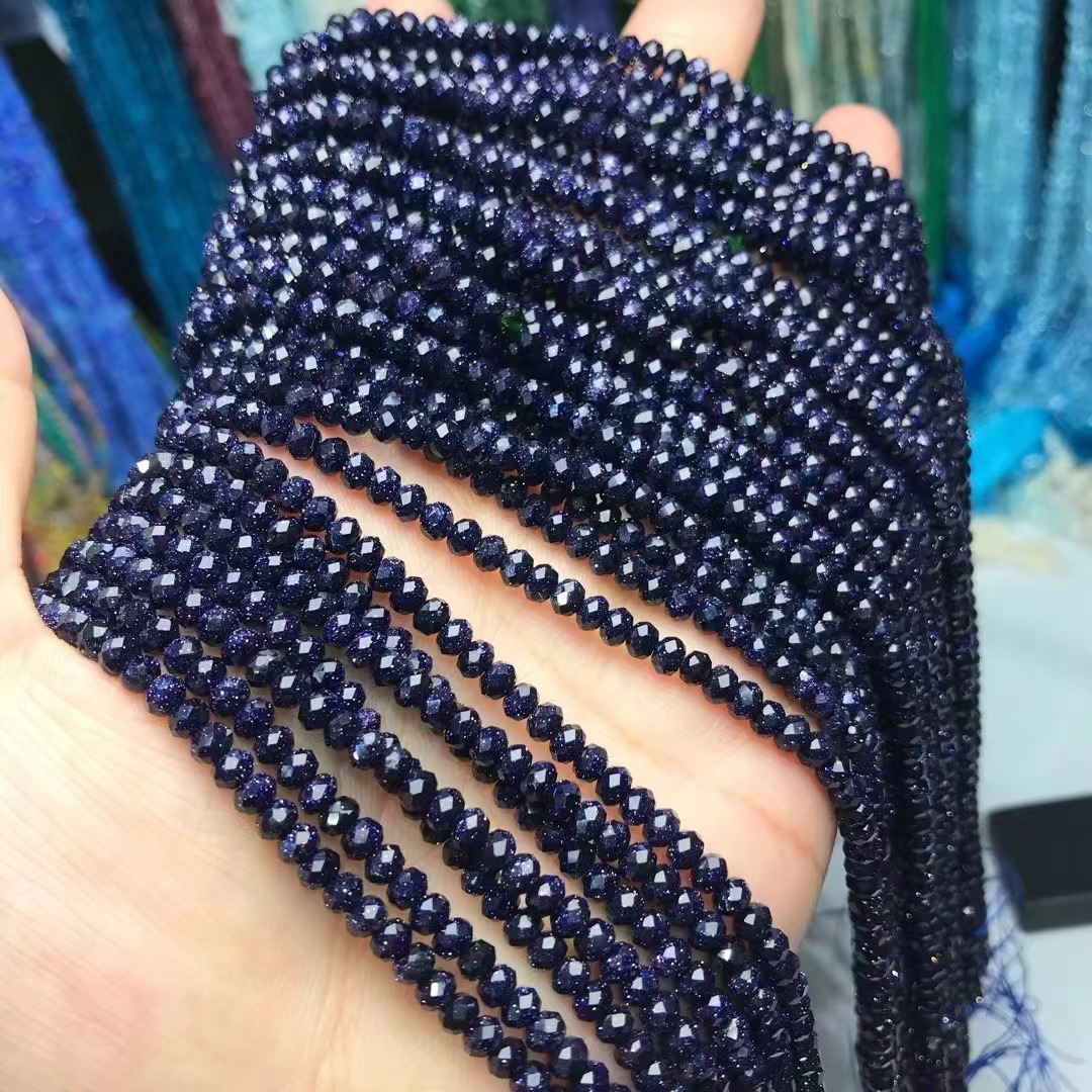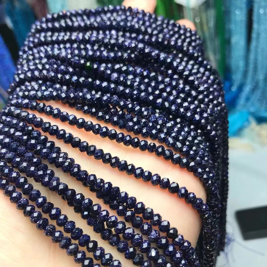 Modrá Goldstone Korálky, lesklý, přírodní & DIY & tváří, 3x4mm, Prodáno za Cca 35-40 cm Strand