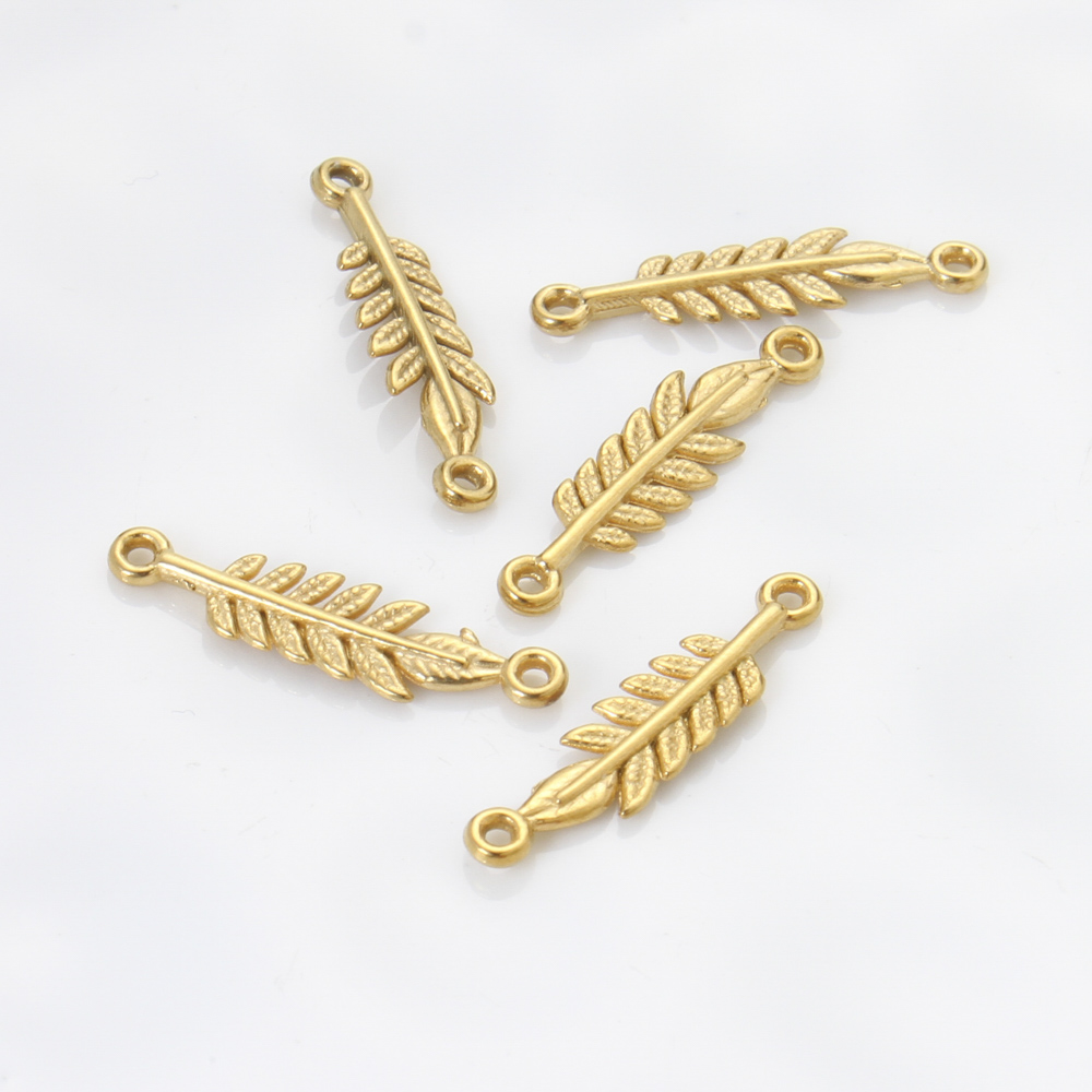 Nerezová ocel Connector, 304 Stainless Steel, Peří, barva pozlacený, DIY, zlatý, 21.60x5x1.50mm, Prodáno By PC