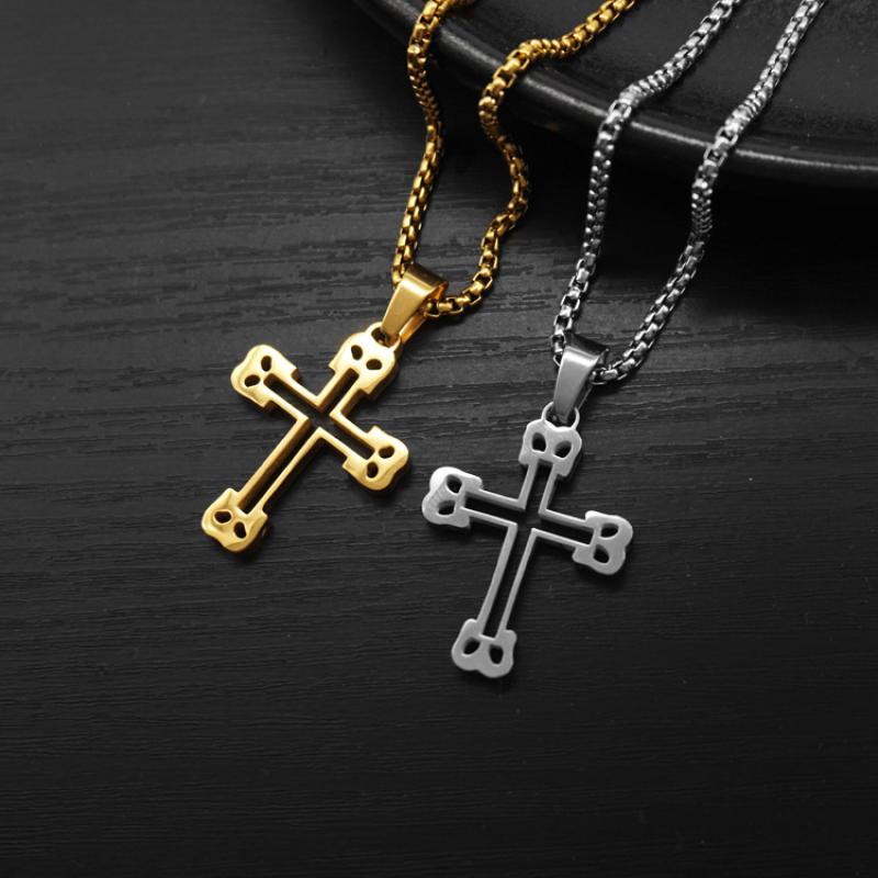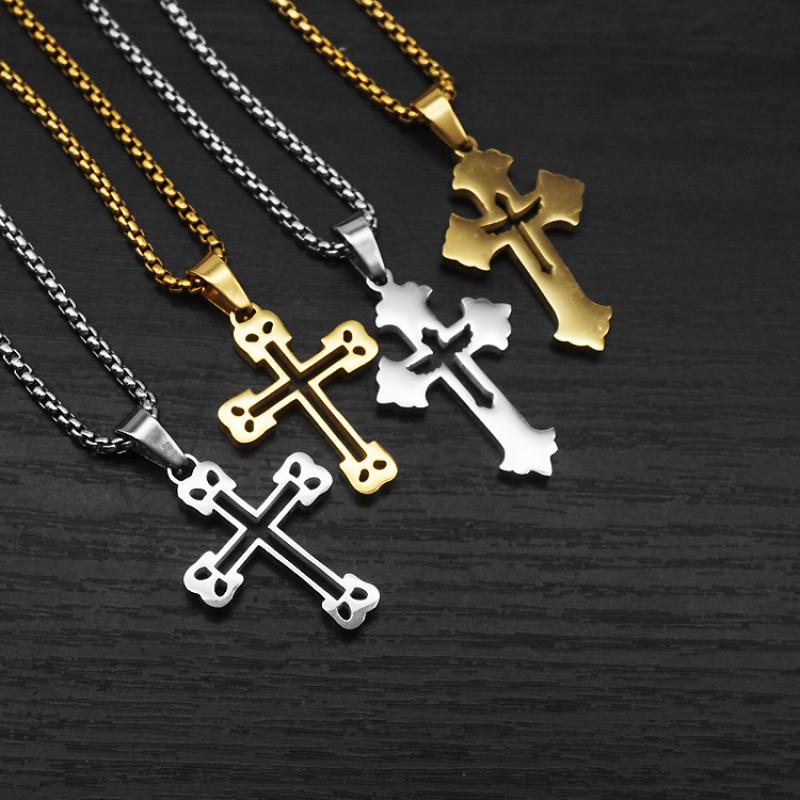 Nerezová ocel Cross Přívěsky, 304 Stainless Steel, s Titanium ocel, Kříž, barva pozlacený, módní šperky & s drahokamu, více barev na výběr, 38x6x68mm, Prodáno By PC