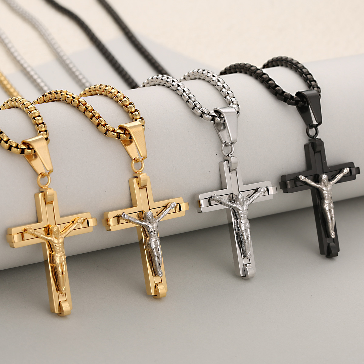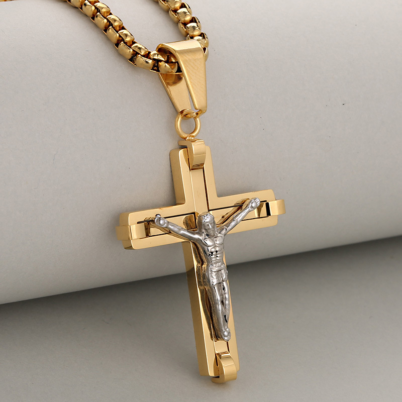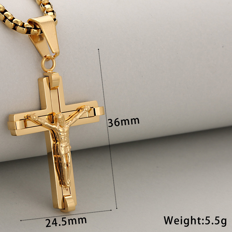 Nerezová ocel Cross Přívěsky, 304 Stainless Steel, s Titanium ocel, Kříž, barva pozlacený, módní šperky & s drahokamu, více barev na výběr, 38x6x68mm, Prodáno By PC