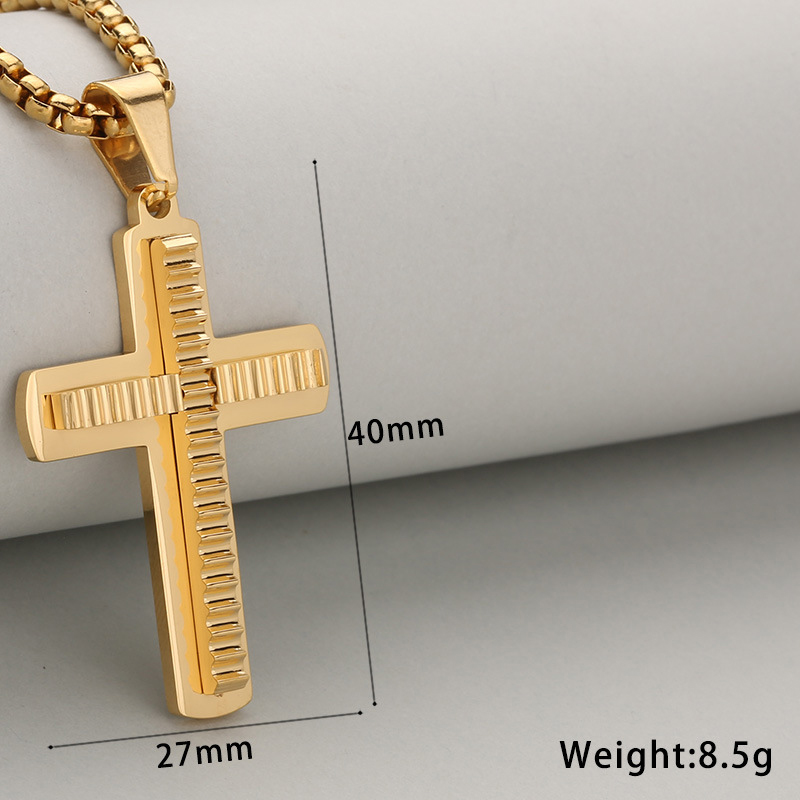 Nerezová ocel Cross Přívěsky, 304 Stainless Steel, s Titanium ocel, Kříž, barva pozlacený, módní šperky & s drahokamu, více barev na výběr, 38x6x68mm, Prodáno By PC