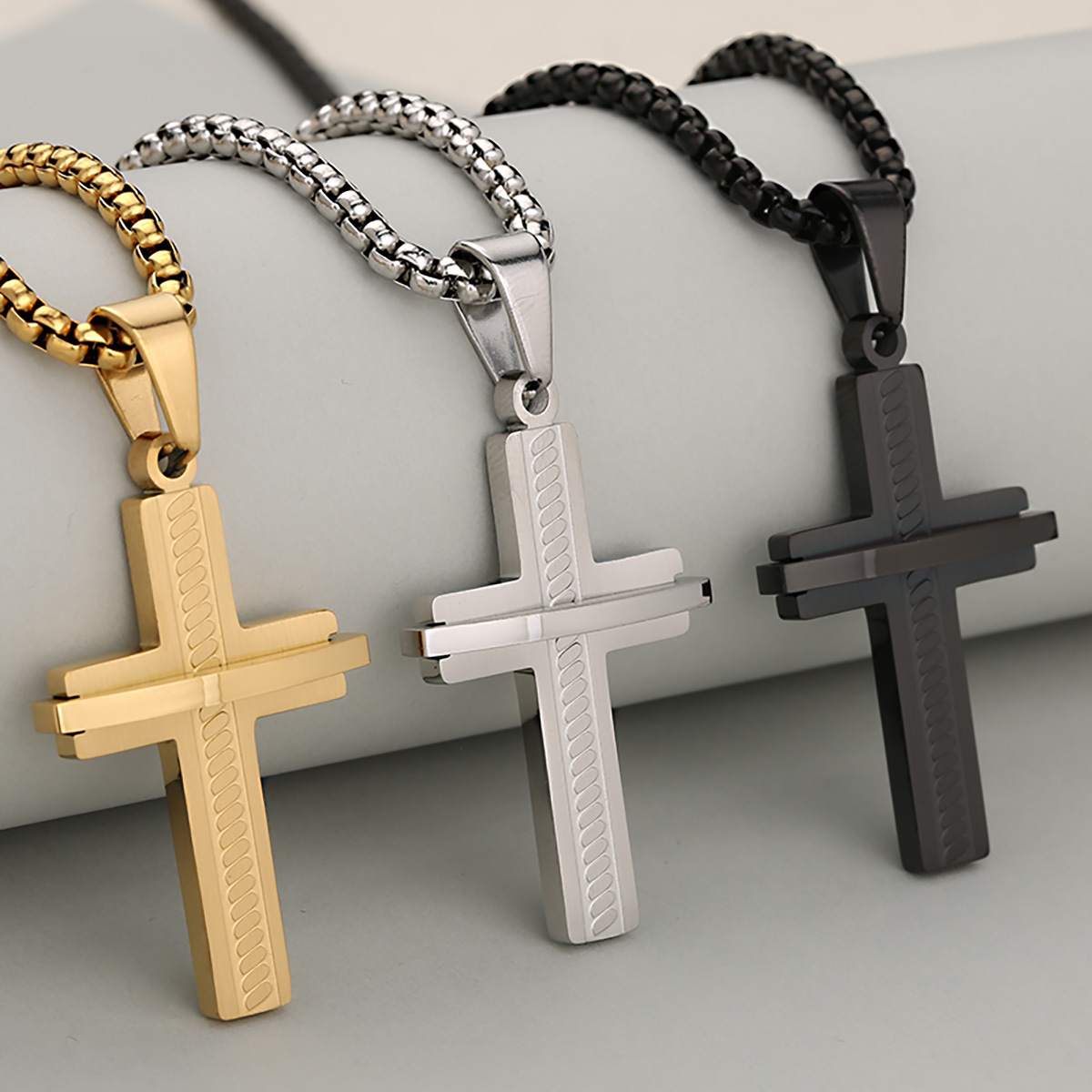 Nerezová ocel Cross Přívěsky, 304 Stainless Steel, s Titanium ocel, Kříž, barva pozlacený, módní šperky & s drahokamu, více barev na výběr, 38x6x68mm, Prodáno By PC