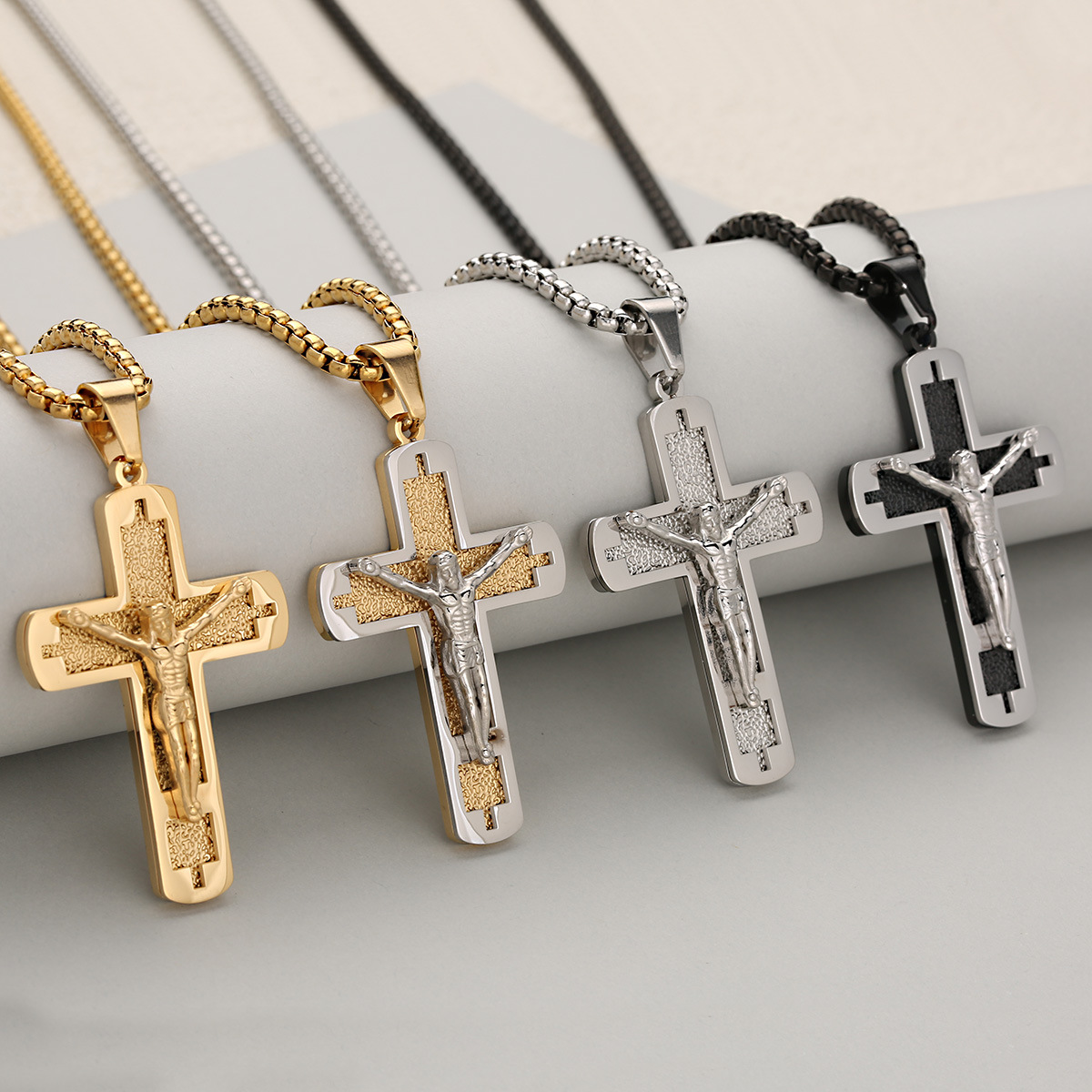 Nerezová ocel Cross Přívěsky, 304 Stainless Steel, s Titanium ocel, Kříž, barva pozlacený, módní šperky & s drahokamu, více barev na výběr, 38x6x68mm, Prodáno By PC