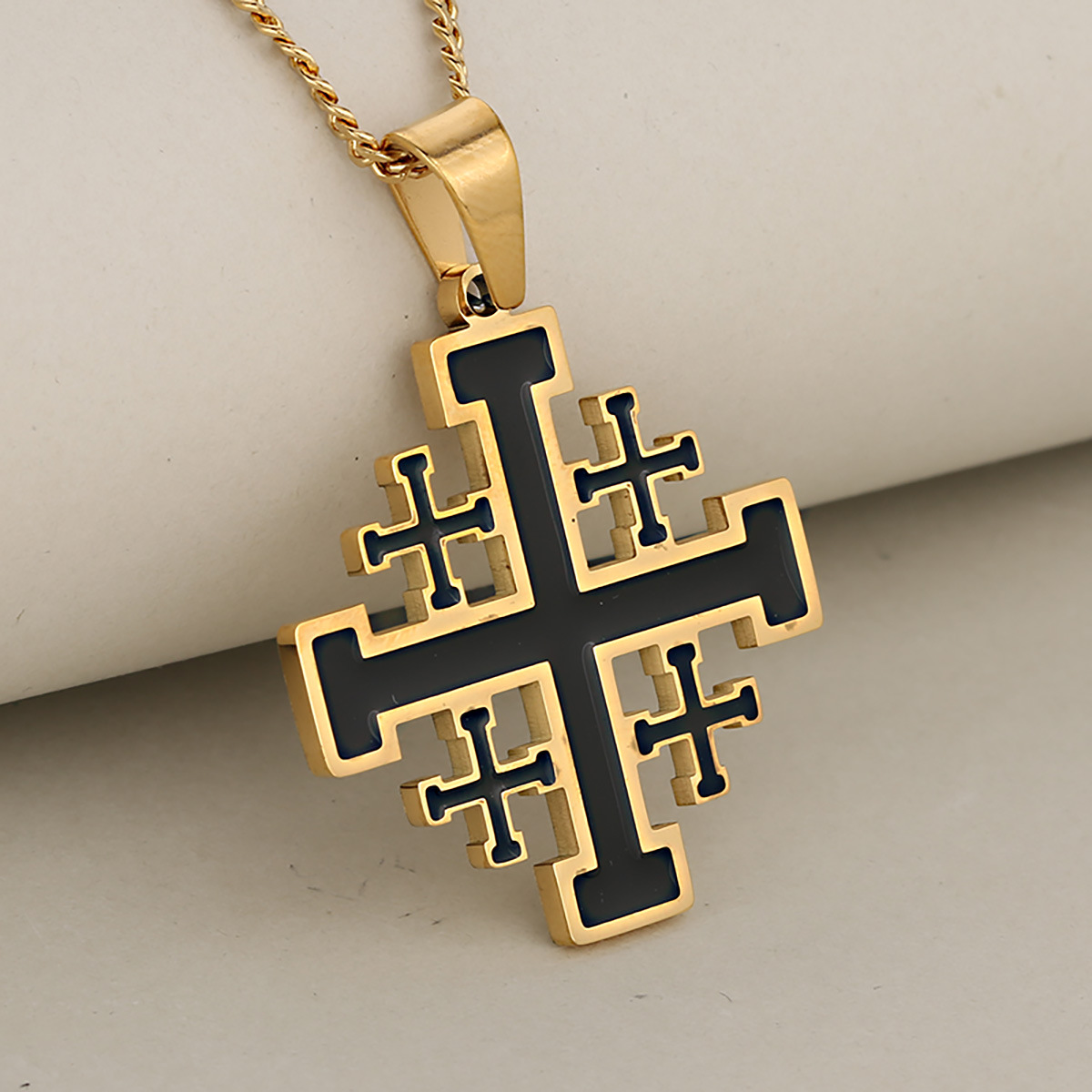 Nerezová ocel Cross Přívěsky, 304 Stainless Steel, s Titanium ocel, Kříž, barva pozlacený, módní šperky & s drahokamu, více barev na výběr, 38x6x68mm, Prodáno By PC