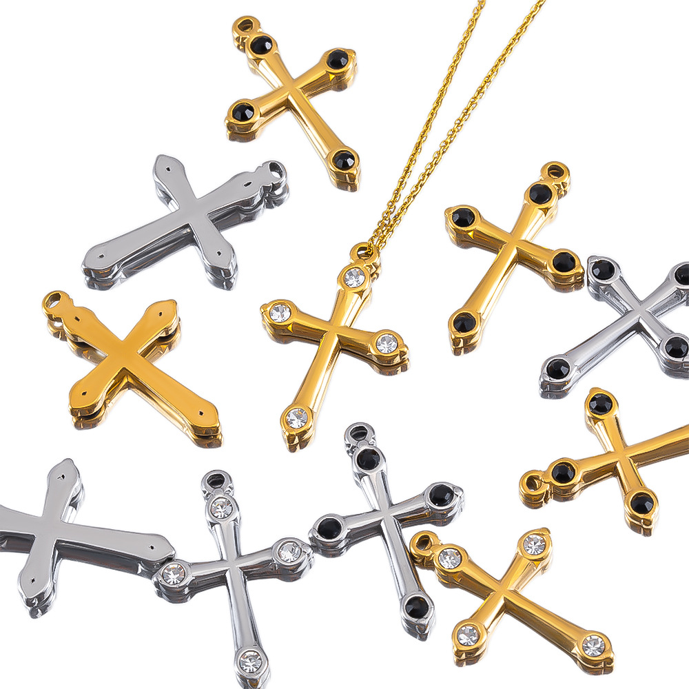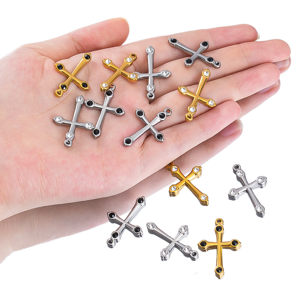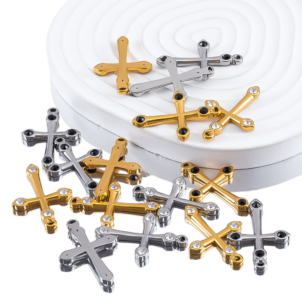 Nerezová ocel Cross Přívěsky, 304 Stainless Steel, Kříž, DIY & s drahokamu, více barev na výběr, 2PC/Bag, Prodáno By Bag