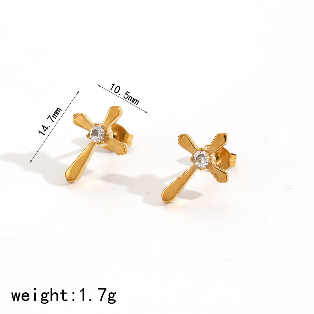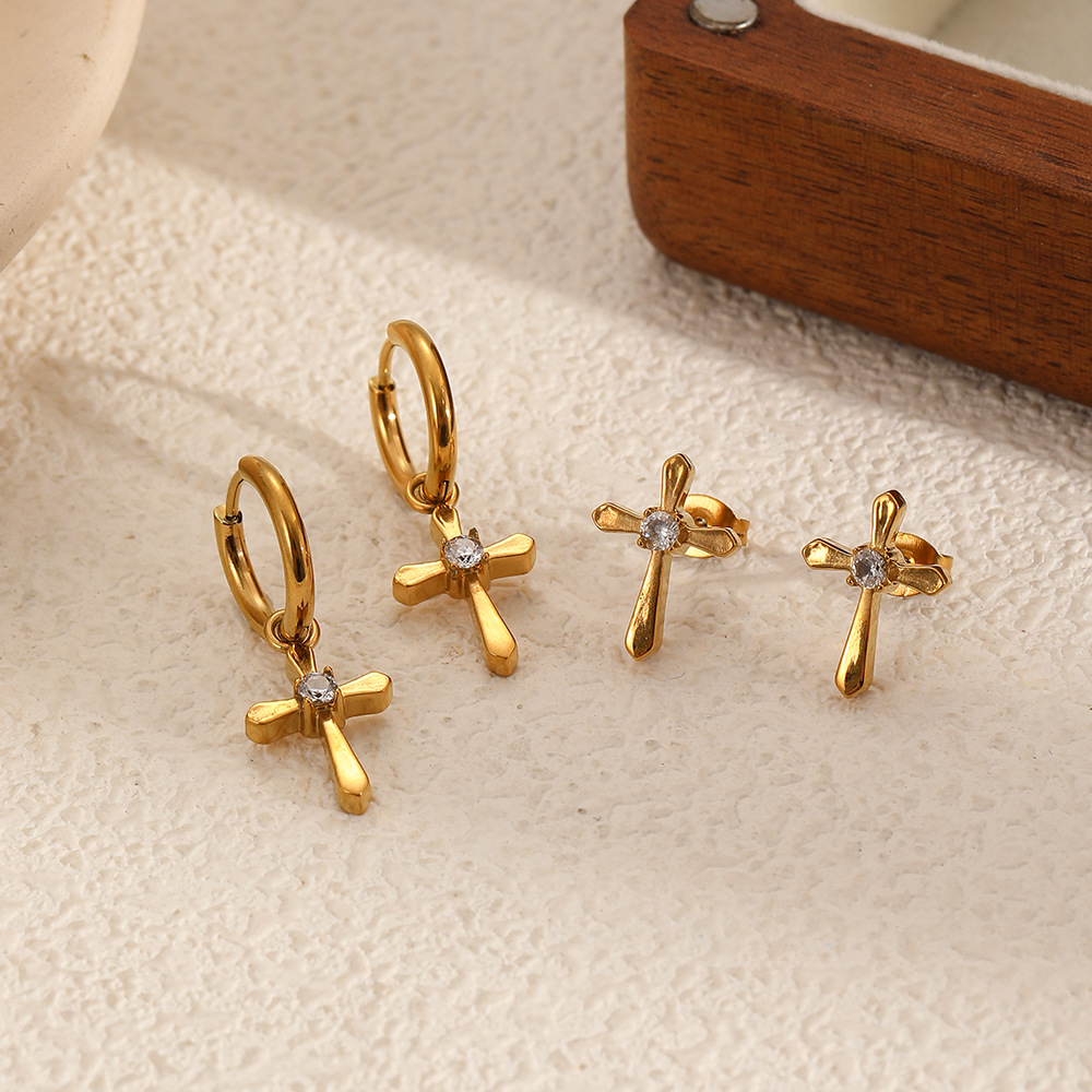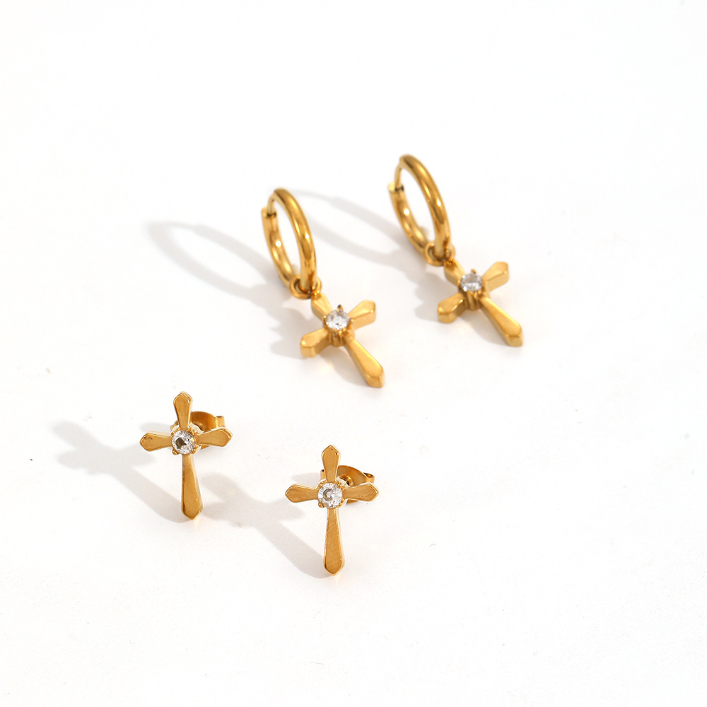 Nerezová ocel Drop náušnice, 304 Stainless Steel, Kříž, barva pozlacený, módní šperky & s drahokamu, zlatý, Prodáno By Pair