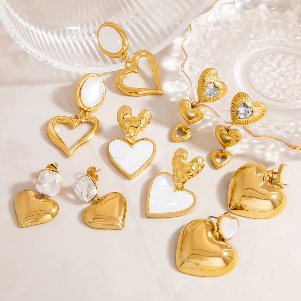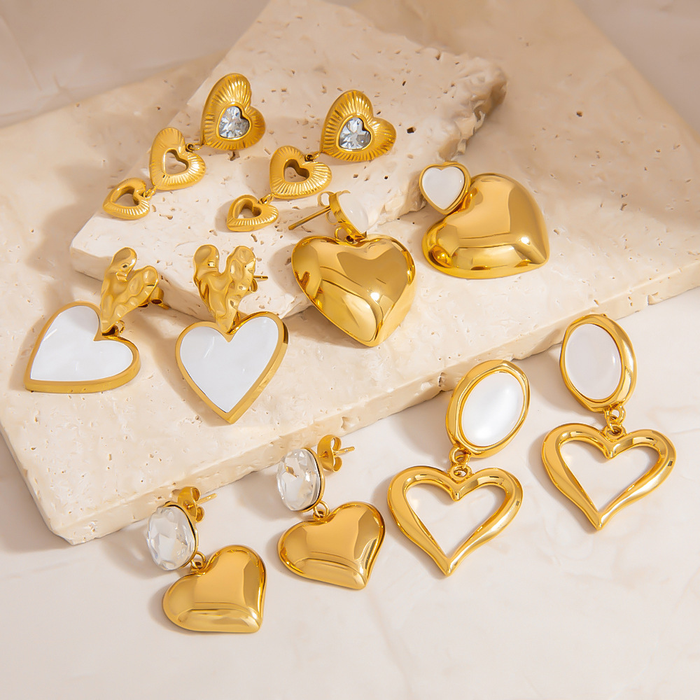 Nerezová ocel Drop náušnice, 304 Stainless Steel, s White Shell, barva pozlacený, módní šperky & s drahokamu, více barev na výběr, Prodáno By Pair