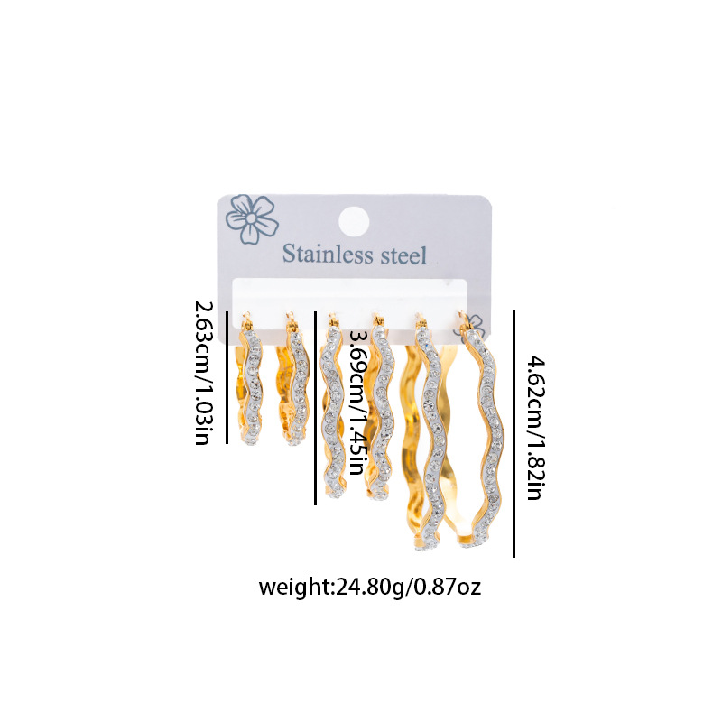 Nerezová ocel Drop náušnice, 304 Stainless Steel, tři kusy & různé styly pro výběr & pro ženy & s drahokamu, zlatý, Prodáno By nastavit