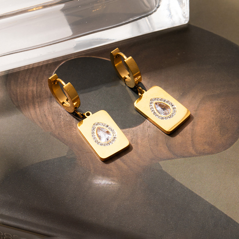Nerezová ocel Drop náušnice, 304 Stainless Steel, barva pozlacený, módní šperky & micro vydláždit kubické zirkony, více barev na výběr, Prodáno By Pair