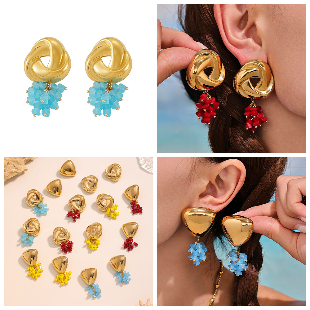 304 Stainless Steel Drop náušnice, s Přírodní kámen, módní šperky & různé styly pro výběr & pro ženy, zlatý, Prodáno By Pair