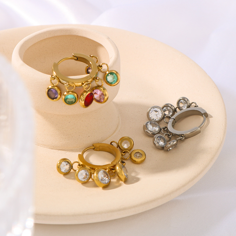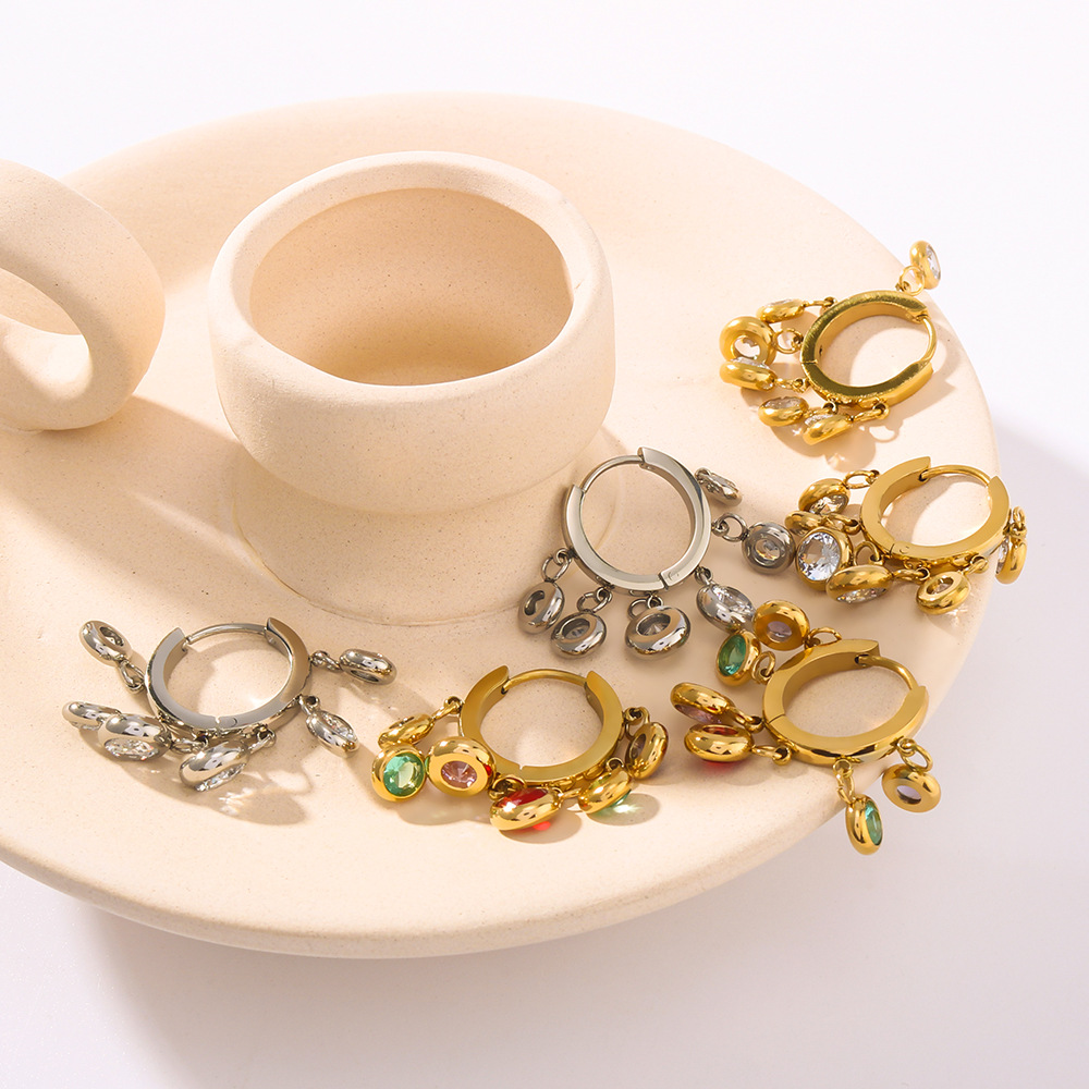 Nerezová ocel Drop náušnice, 304 Stainless Steel, módní šperky & micro vydláždit kubické zirkony & pro ženy, více barev na výběr, Prodáno By Pair
