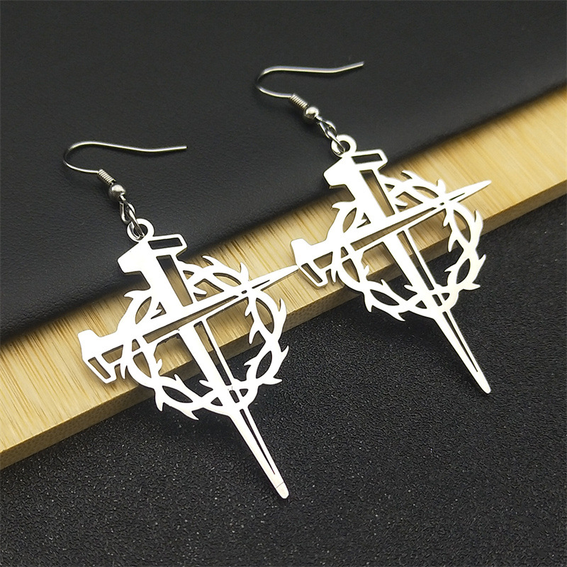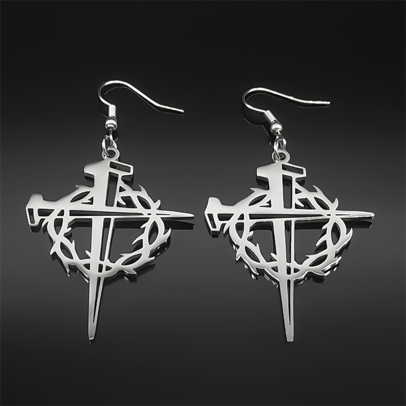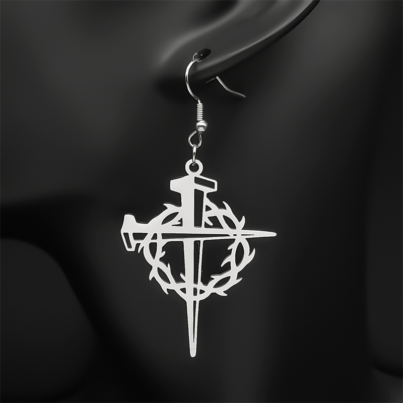 316L nerezové oceli Huggie Hoop Drop náušnice, Kříž, módní šperky & unisex, více barev na výběr, 20x55mm, Prodáno By PC
