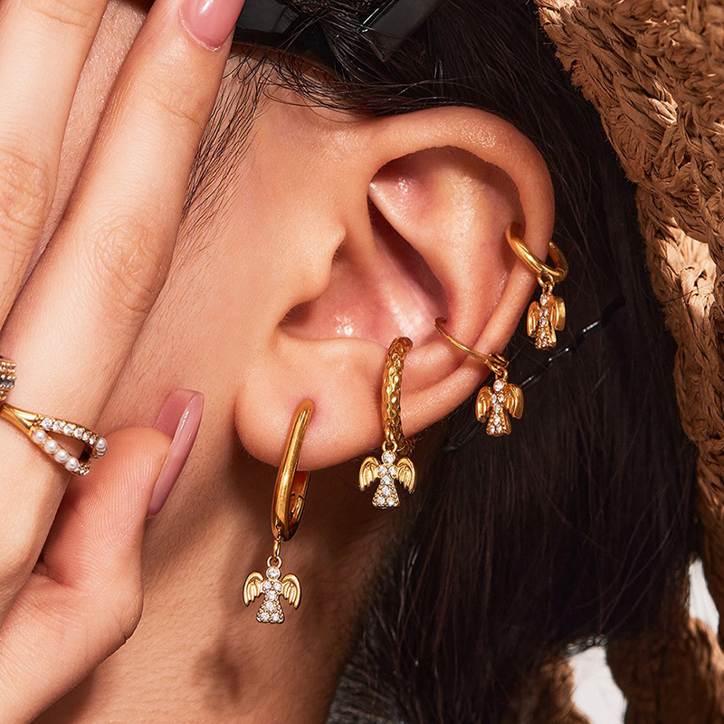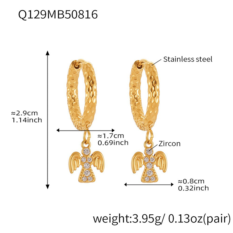 Nerezová ocel Drop náušnice, 304 Stainless Steel, Anděl, módní šperky & micro vydláždit kubické zirkony & pro ženy, zlatý, Prodáno By Pair