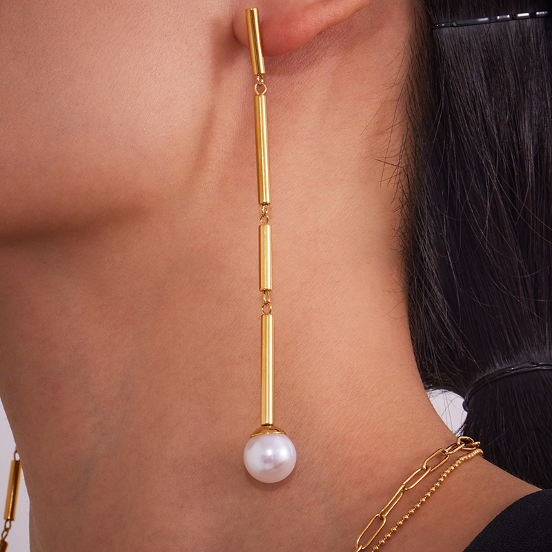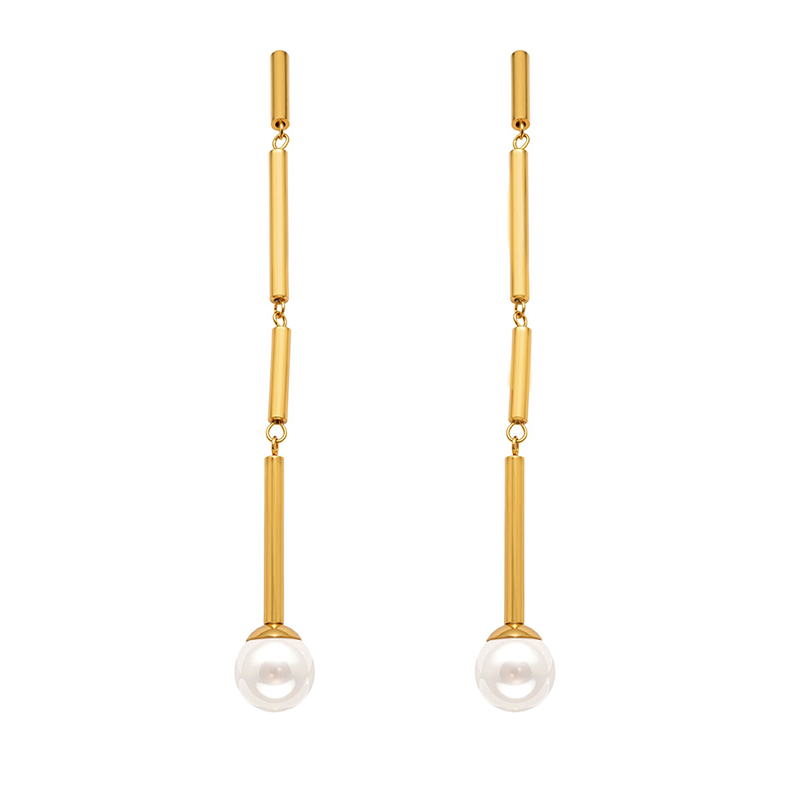 Nerezová ocel Drop náušnice, 304 Stainless Steel, s Přírodní kámen & Plastové Pearl, barva pozlacený, pro ženy, Prodáno By Pair