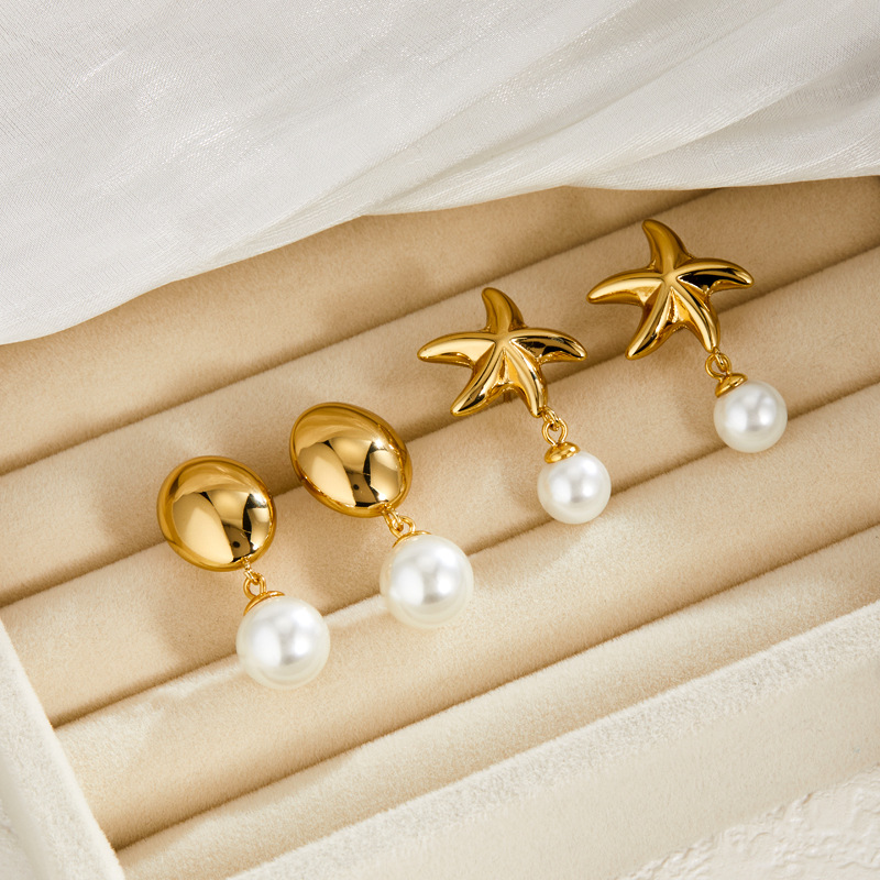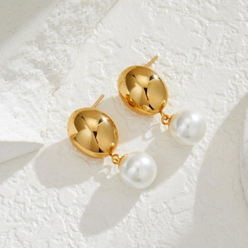 Nerezová ocel Drop náušnice, 304 Stainless Steel, s Plastové Pearl, 18K pozlacené, módní šperky & různé styly pro výběr & pro ženy, Prodáno By Pair