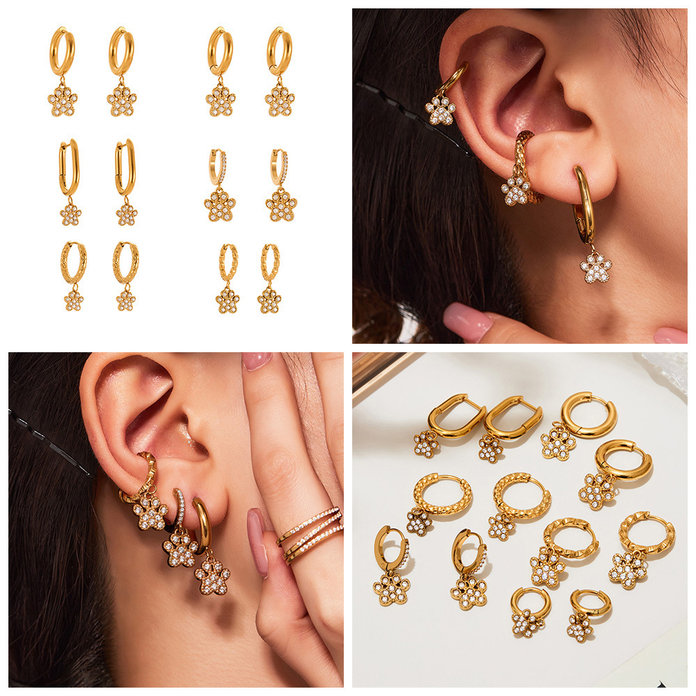 Nerezová ocel Drop náušnice, 304 Stainless Steel, barva pozlacený, módní šperky & micro vydláždit kubické zirkony, více barev na výběr, Prodáno By Pair