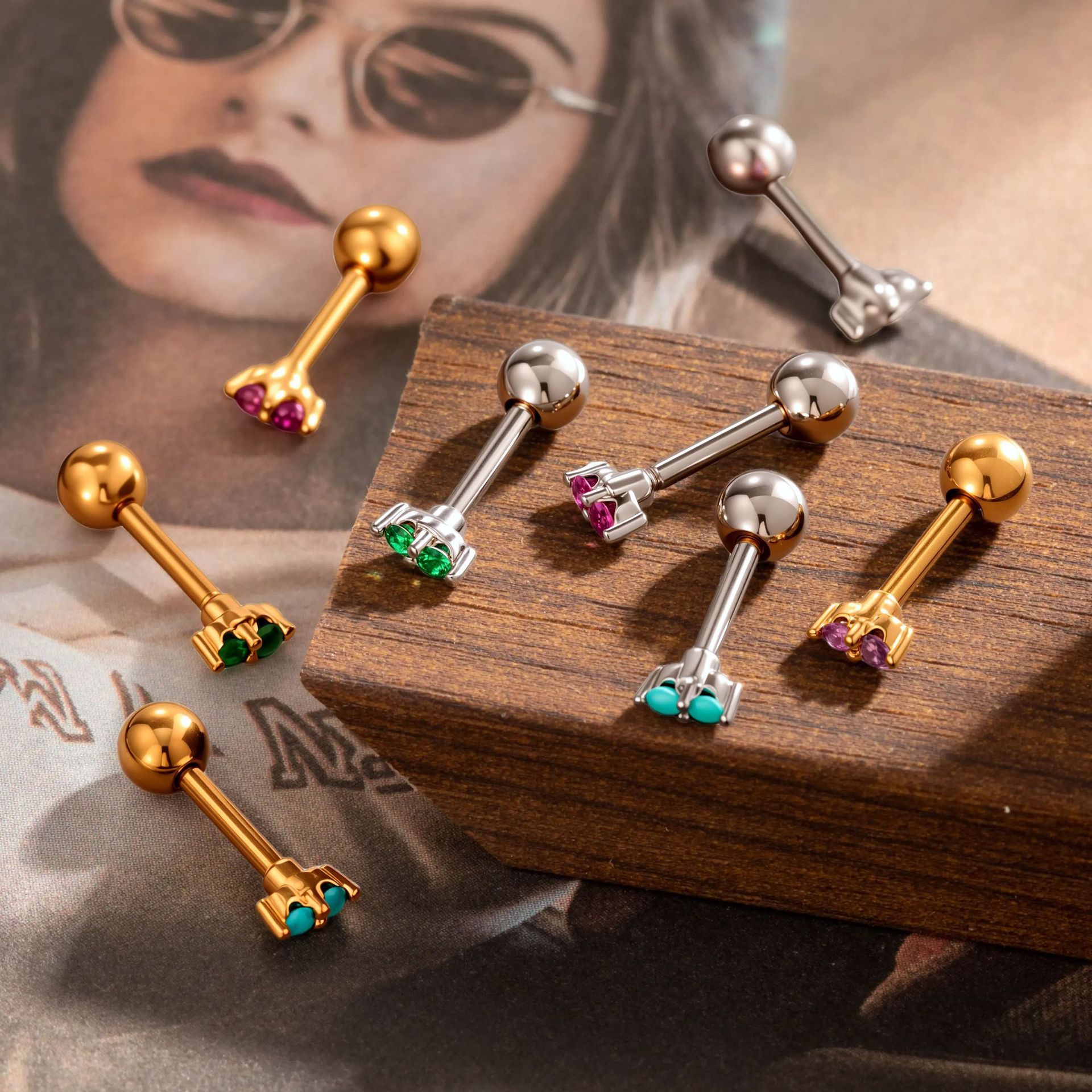 Nerezová ocel Ear Piercing šperky, 304 Stainless Steel, s Mosaz, barva pozlacený, módní šperky & micro vydláždit kubické zirkony, více barev na výběr, Prodáno By PC