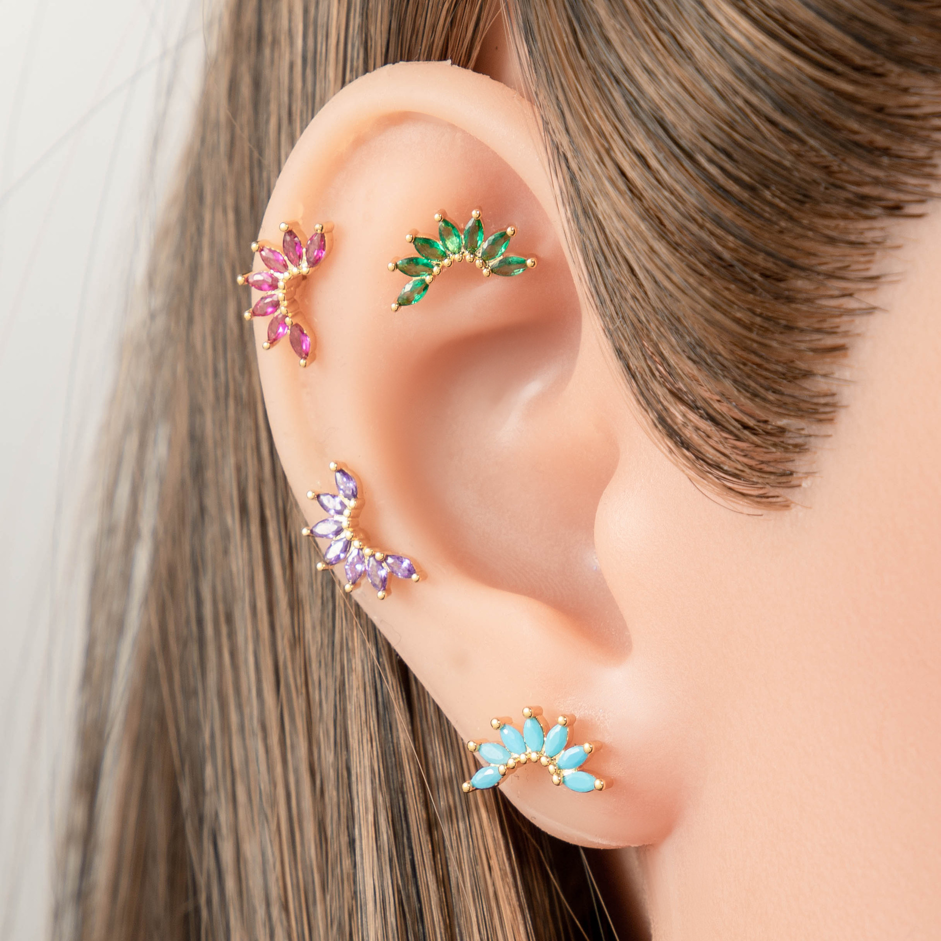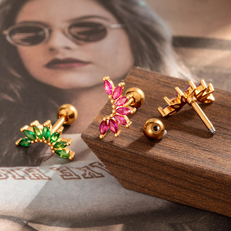 Nerezová ocel Ear Piercing šperky, 304 Stainless Steel, s Mosaz, barva pozlacený, módní šperky & micro vydláždit kubické zirkony, více barev na výběr, Prodáno By PC