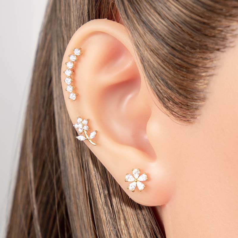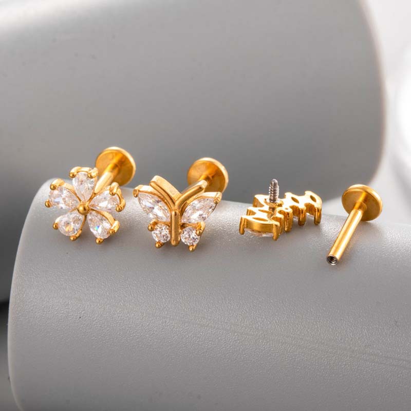 Nerezová ocel Ear Piercing šperky, Titanium ocel, barva pozlacený, módní šperky & micro vydláždit kubické zirkony, více barev na výběr, Prodáno By PC