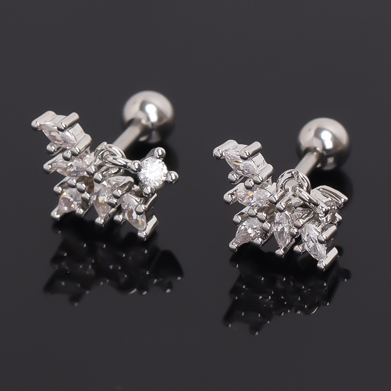 Nerezová ocel Ear Piercing šperky, 304 Stainless Steel, barva pozlacený, módní šperky & s drahokamu, stříbro, Prodáno By PC