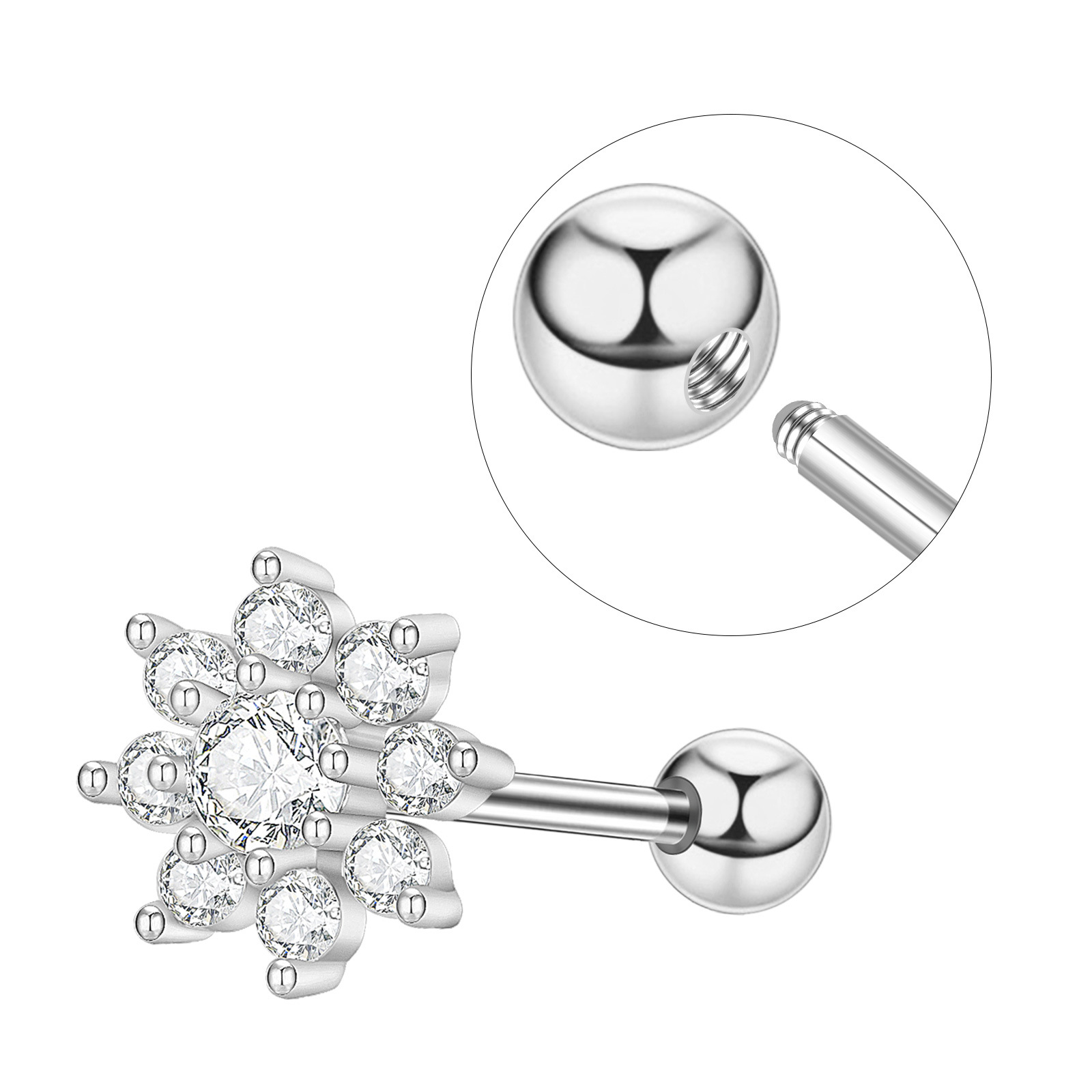 Nerezová ocel Ear Piercing šperky, 304 Stainless Steel, s Mosaz, Květina, módní šperky & micro vydláždit kubické zirkony, více barev na výběr, Prodáno By PC