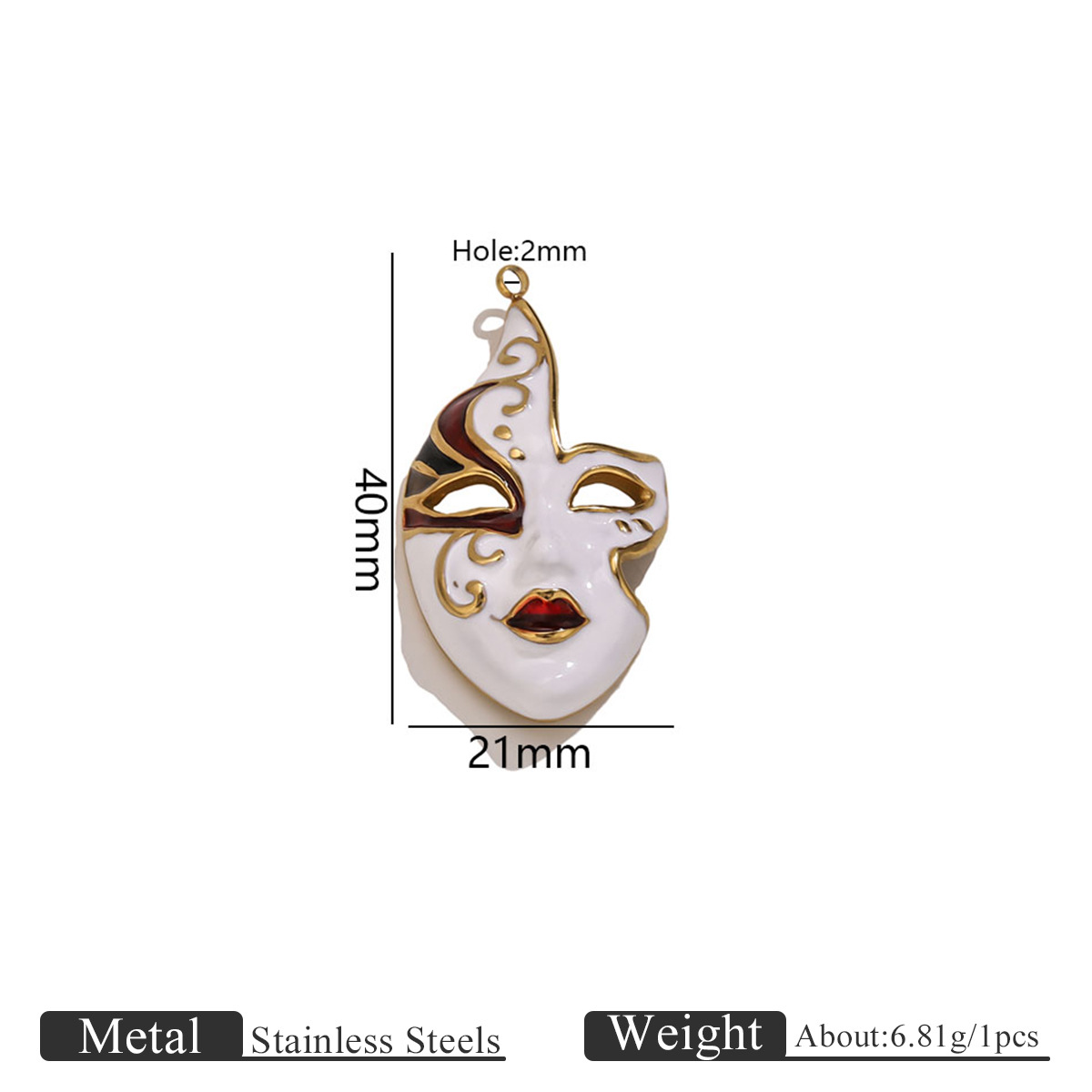 Nerezová ocel Šperky Přívěsky, 304 Stainless Steel, Maska, barva pozlacený, DIY & různé styly pro výběr & smalt & dutý, Prodáno By PC