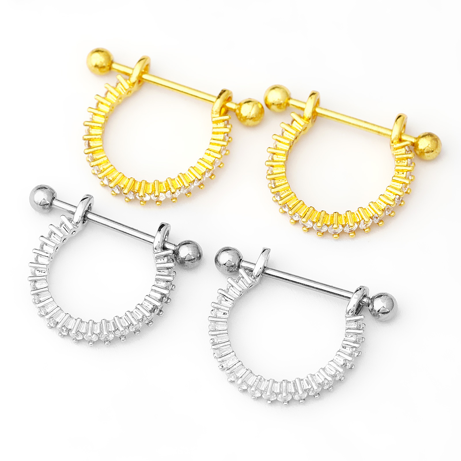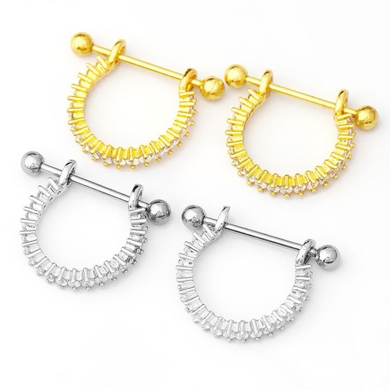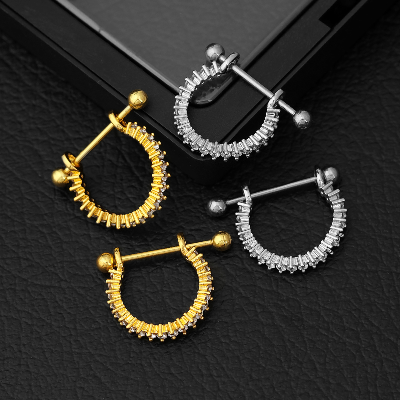 Nerezová ocel bradavky kroužek, 304 Stainless Steel, s Mosaz, módní šperky & micro vydláždit kubické zirkony, více barev na výběr, Prodáno By PC