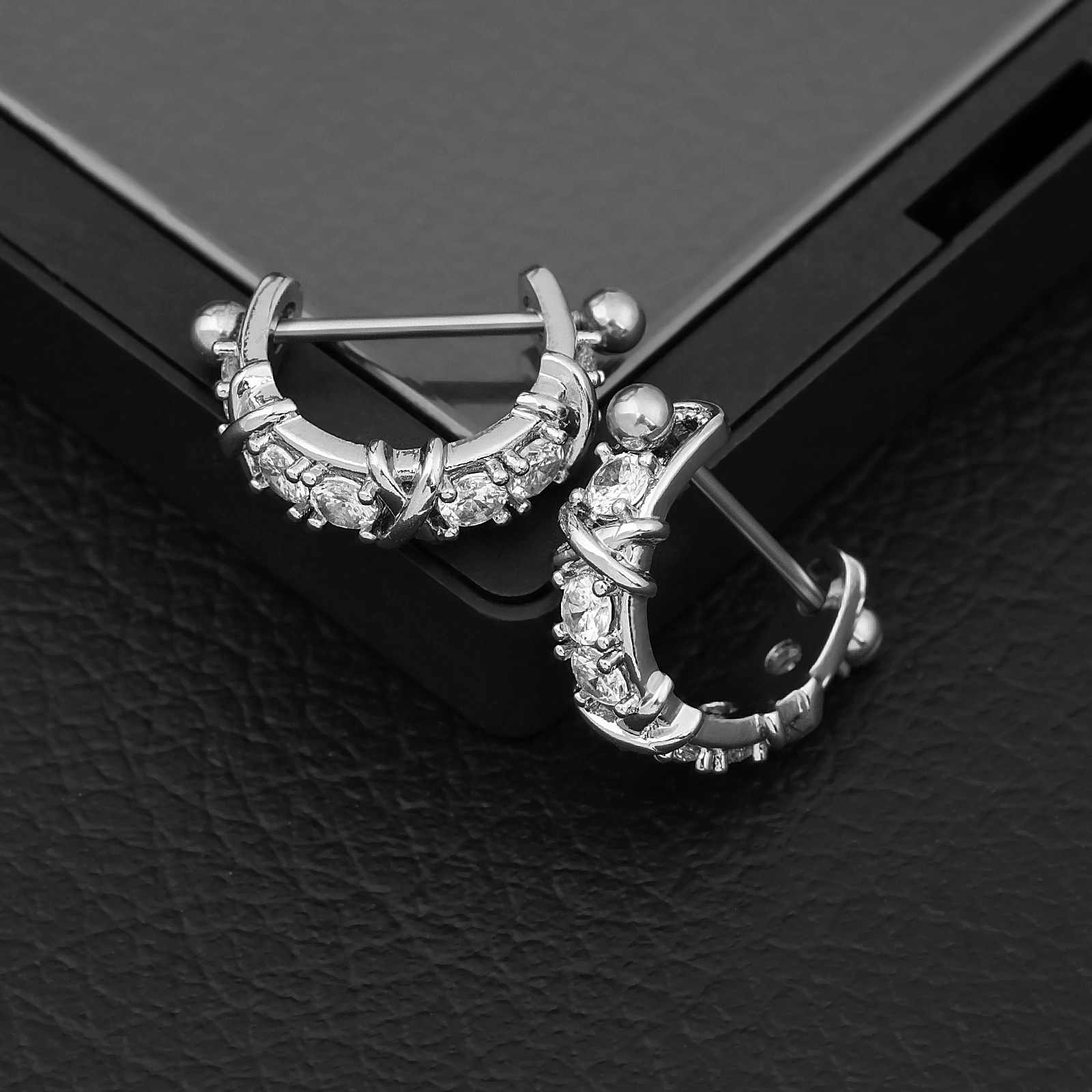 Nerezová ocel bradavky kroužek, 304 Stainless Steel, s Slitina, módní šperky & micro vydláždit kubické zirkony, více barev na výběr, nikl, olovo a kadmium zdarma, Prodáno By PC