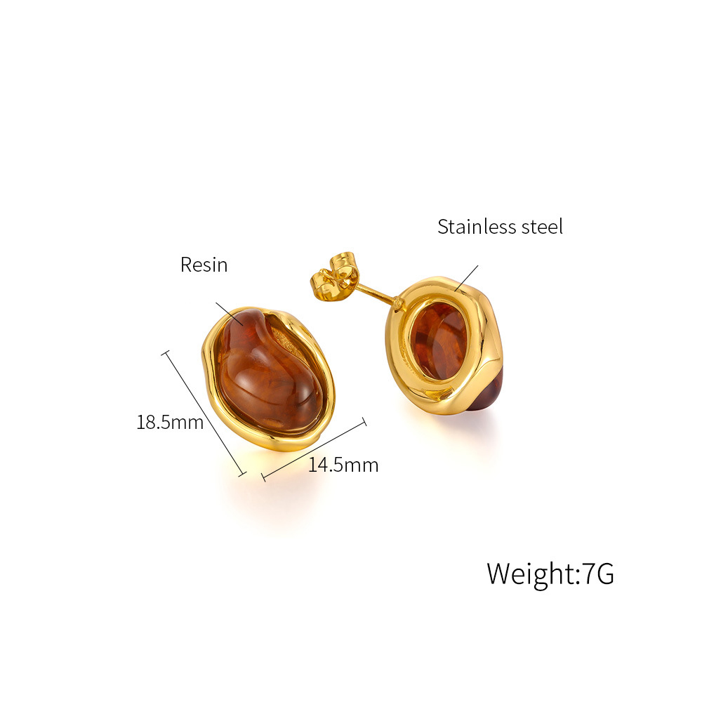 Nerezová ocel náušnice, 304 Stainless Steel, s Pryskyřice, módní šperky & pro ženy, zlatý, Prodáno By Pair