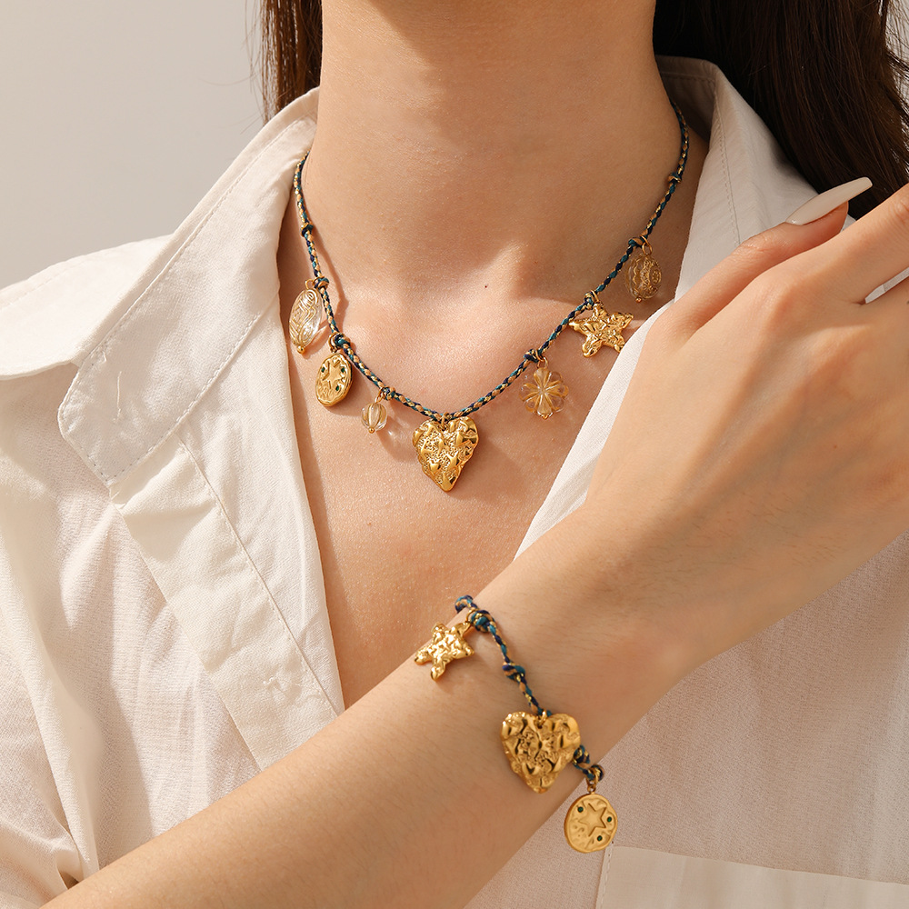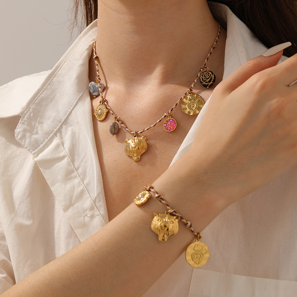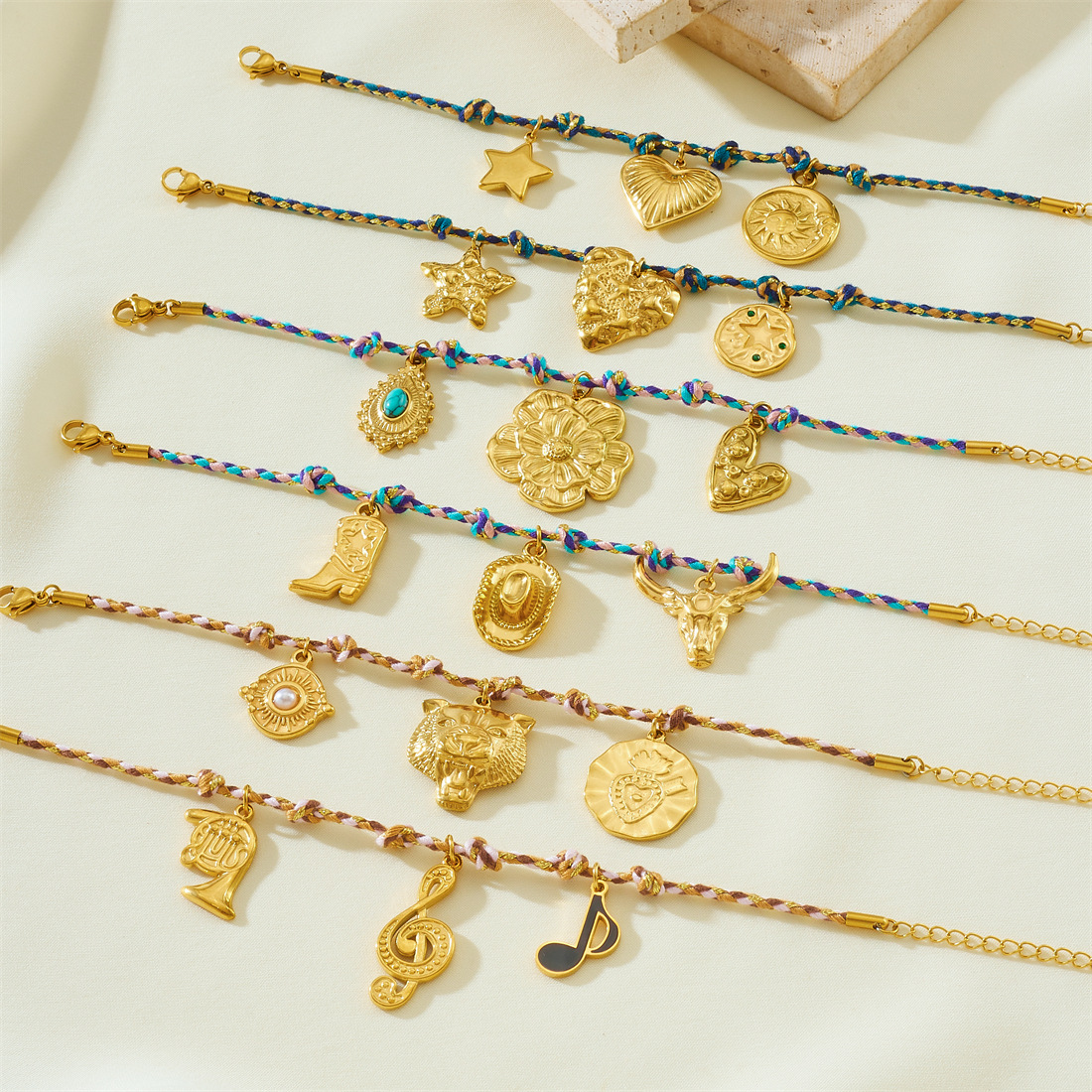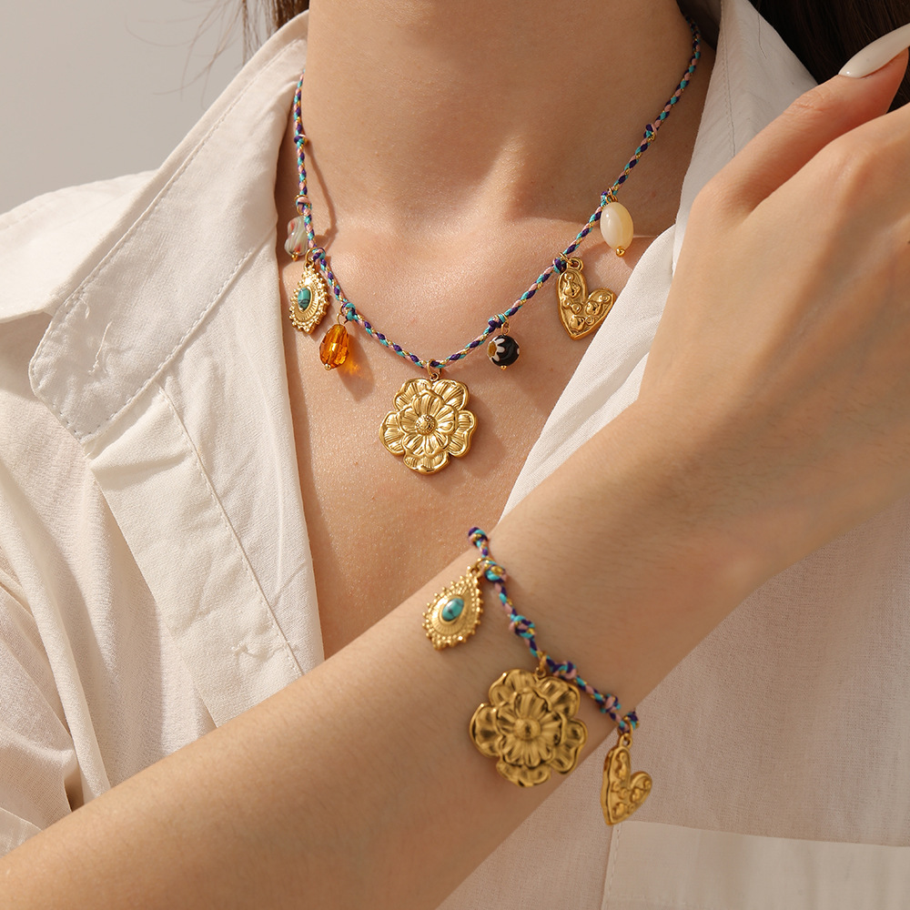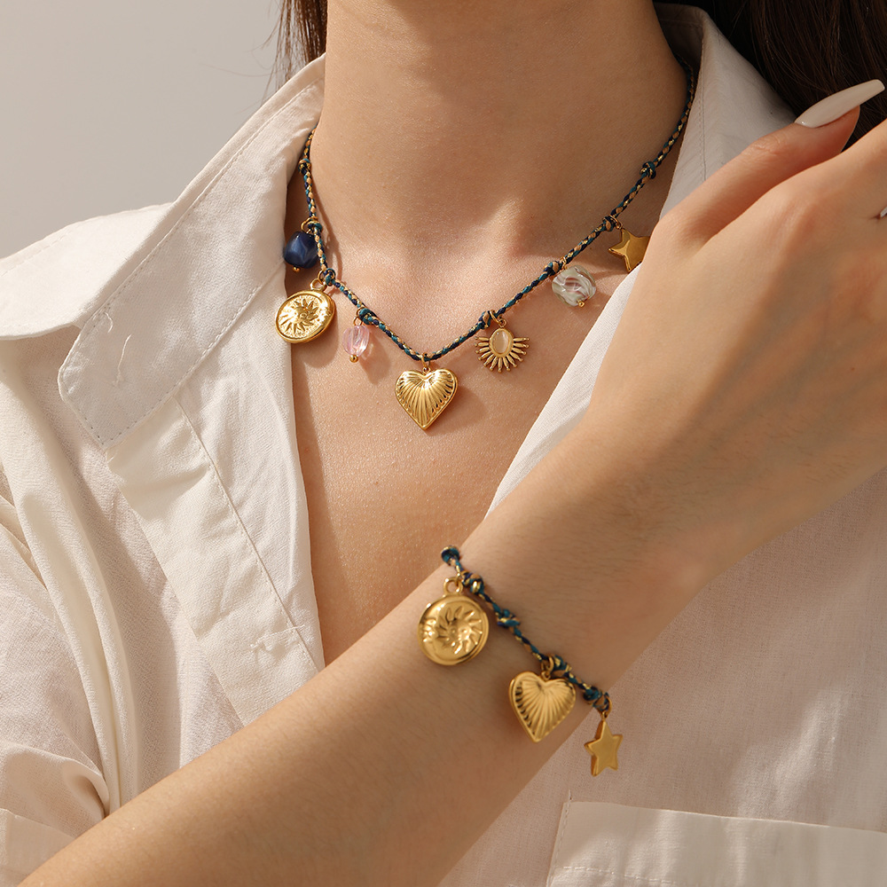 Nerezová ocel šperky Soupravy, 304 Stainless Steel, s Bavlněná nit & Akryl, barva pozlacený, módní šperky & různé styly pro výběr & pro ženy, Prodáno By PC