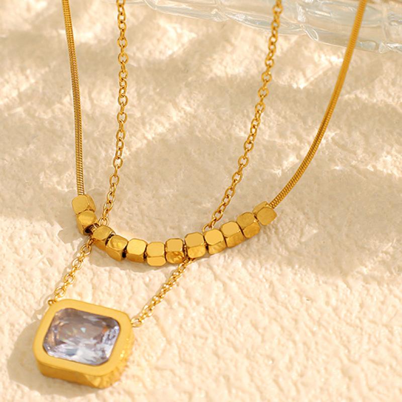 Nerezová ocel šperky náhrdelník, 304 Stainless Steel, s Cubic Zirconia, 2 kusy & módní šperky & pro ženy, zlatý, Prodáno By nastavit