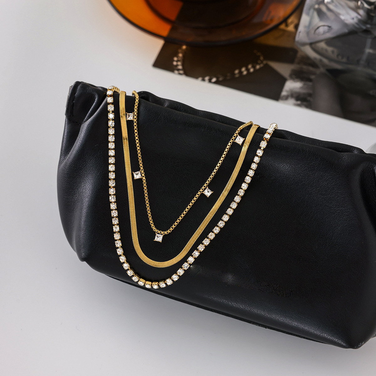 Nerezová ocel šperky náhrdelník, 304 Stainless Steel, s Cubic Zirconia, tři vrstvy & módní šperky & pro ženy, zlatý, Prodáno By PC