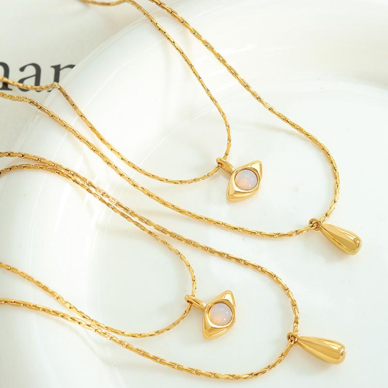 Nerezová ocel šperky náhrdelník, 304 Stainless Steel, s Opál, 18K pozlacené, Dvojitá vrstva & módní šperky & pro ženy, Délka 40 cm, 45 cm, Prodáno By PC