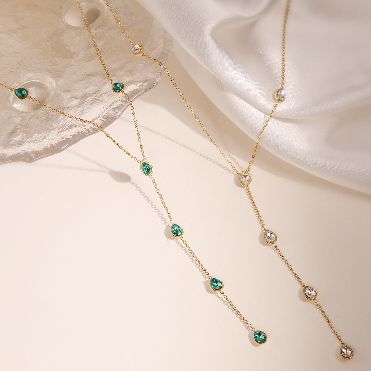 Nerezová ocel šperky náhrdelník, 304 Stainless Steel, 18K pozlacené, módní šperky & micro vydláždit kubické zirkony & pro ženy, více barev na výběr, Prodáno By PC