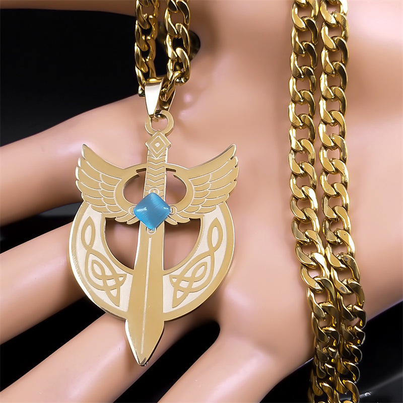 Nerezová ocel šperky náhrdelník, 304 Stainless Steel, s Kočky Eye, módní šperky & pro muže & dutý, zlatý, Prodáno By PC