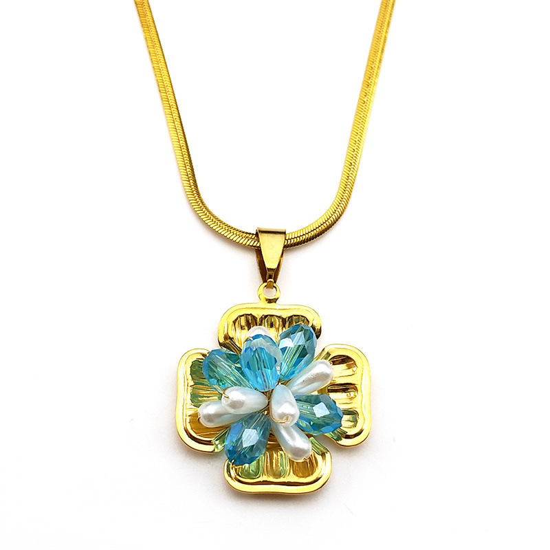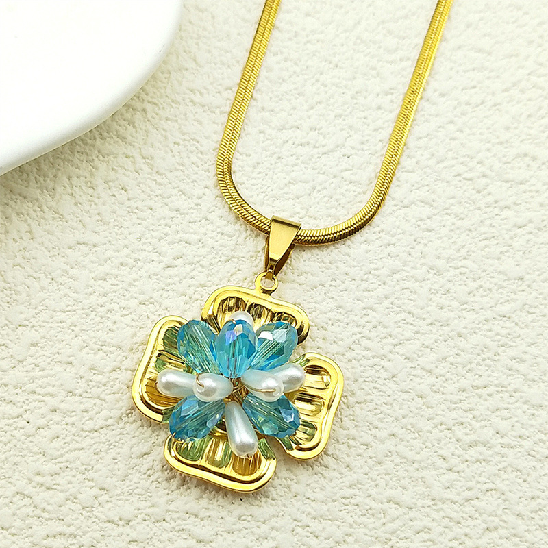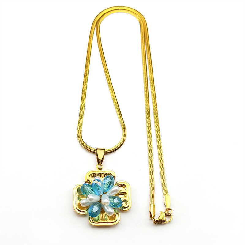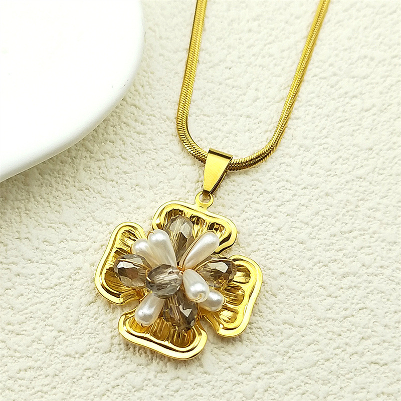 Nerezová ocel šperky náhrdelník, 304 Stainless Steel, s Krystal & Plastové Pearl, barva pozlacený, módní šperky & pro ženy, více barev na výběr, Prodáno By PC