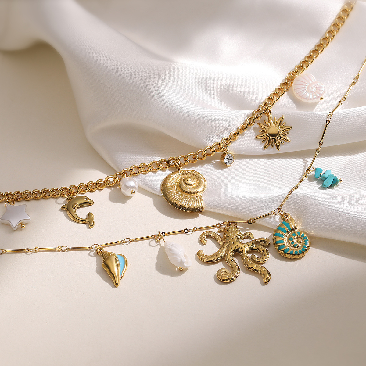 Nerezová ocel šperky náhrdelník, 304 Stainless Steel, s White Shell, barva pozlacený, módní šperky & různé materiály pro výběr & pro ženy, více barev na výběr, Délka Cca 45 cm, Prodáno By PC